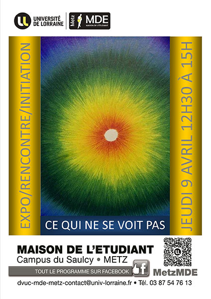 Simon Deybach vous propose de découvrir « ce qui ne se voit pas ». Vous pourrez le rencontrer en plein processus de création et découvrir son univers lumineux et coloré entre 12h30 et 15h le jeudi 9 avril au 1er étage de la MDE. Ce sera l’occasion d’échanger avec lui sur ses sources d’inspiration, ses techniques de dessin et matériaux de prédilection. Possibilité d’initiation au plaisir de la pratique de la couleur.