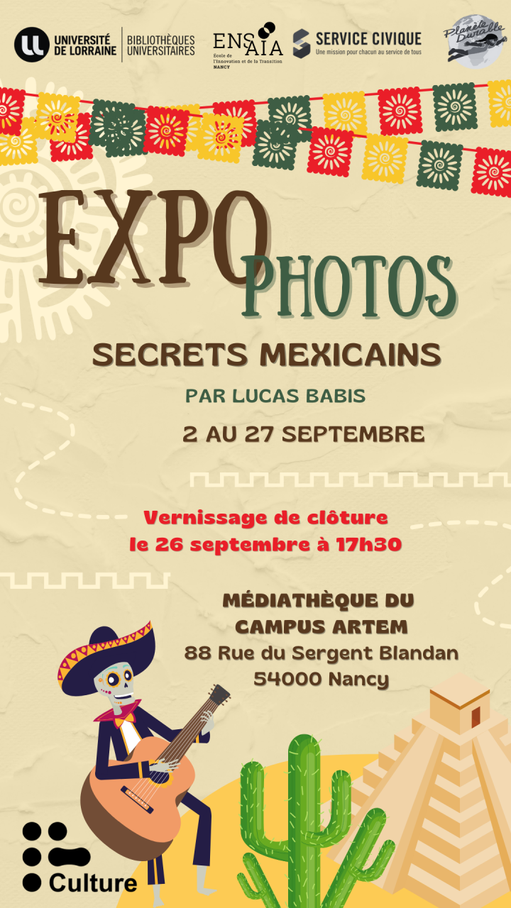 La Médiathèque du campus ARTEM met à l’honneur le Mexique dans l’exposition "Secrets mexicains", à découvrir librement du 2 au 27 septembre 2024.