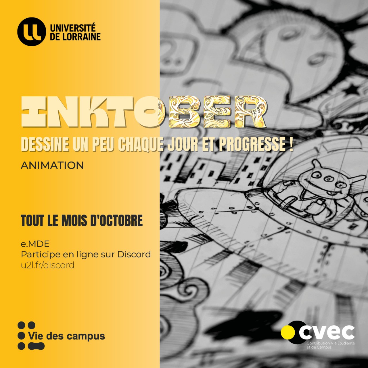 Tous les jours un nouveau thème, tous les jours un nouveau dessin. Créé, expérimente et progresse avec d’autres étudiants passionnés.