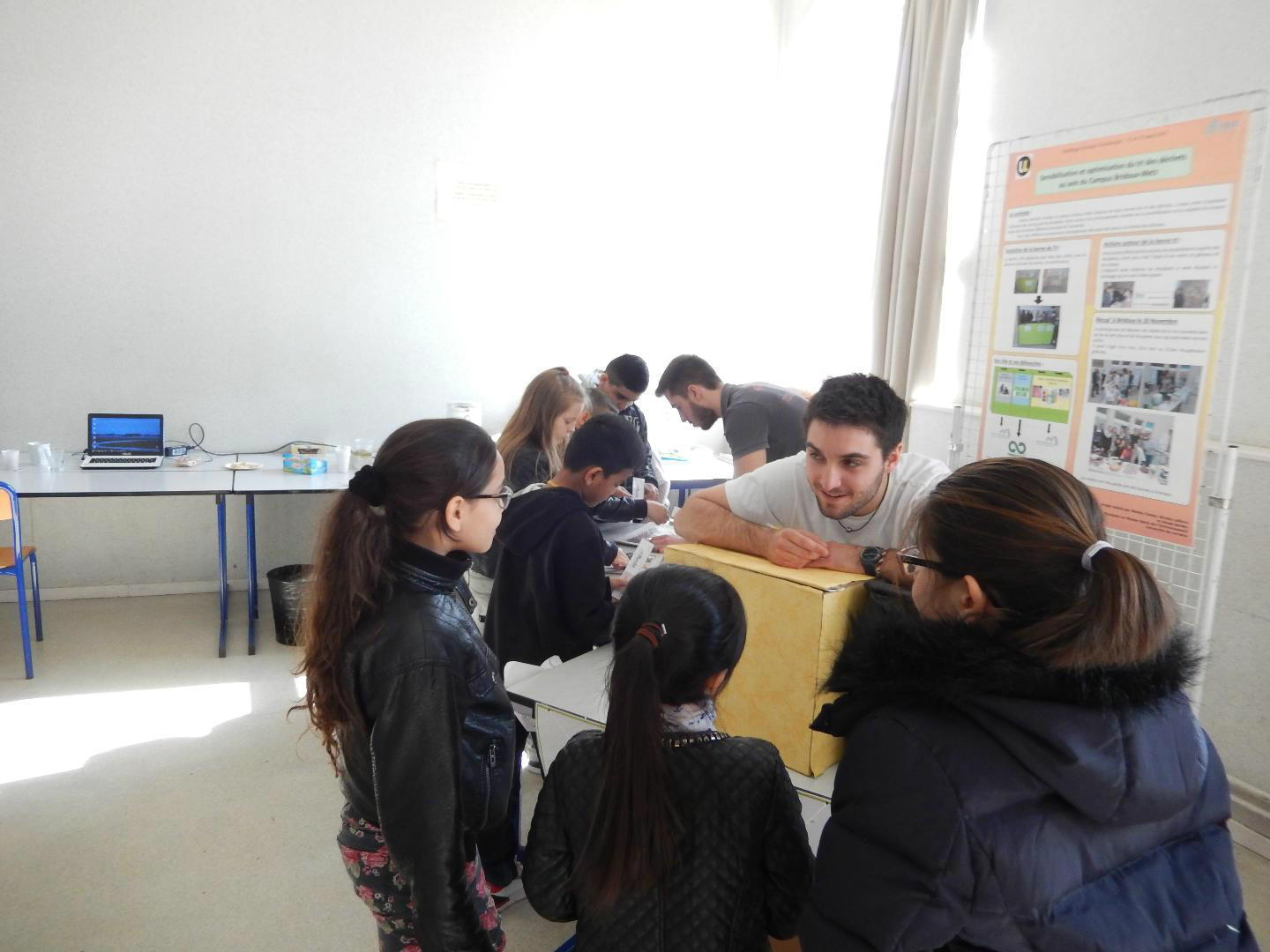 Le jeudi 12 mars, 4 classes de CM2 sont venues voir les projets des étudiants : ceux-ci leur ont expliqué leurs travaux réalisés dans le cadre de leur doctorat, ou de leurs projets de fin d'études, etc....