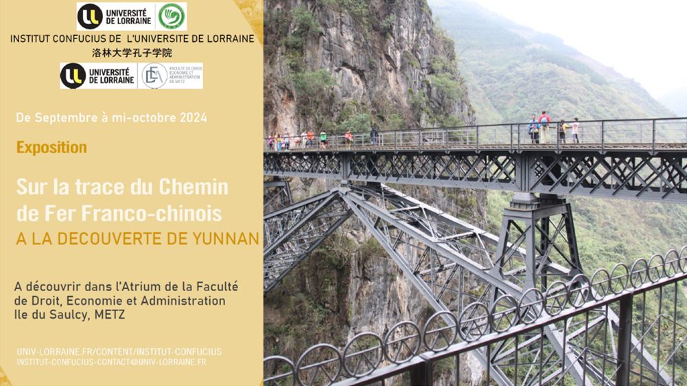 L’Institut Confucius de l’Université de Lorraine et la Faculté de Droit, Economie et Administration de Metz vous invitent à découvrir le premier chemin de fer chinois qui reliait la Chine à l’étranger : le Chemin de Fer Dian Yue à Yunnan. Faisant partie de la ligne entre l’Indochine et la province de Yunnan, cette voie ferroviaire a été construite par la France entre 1904 et 1910. La mise en service de cette ligne a joué un rôle important géopolitique et a favorisé le développement économique de la région