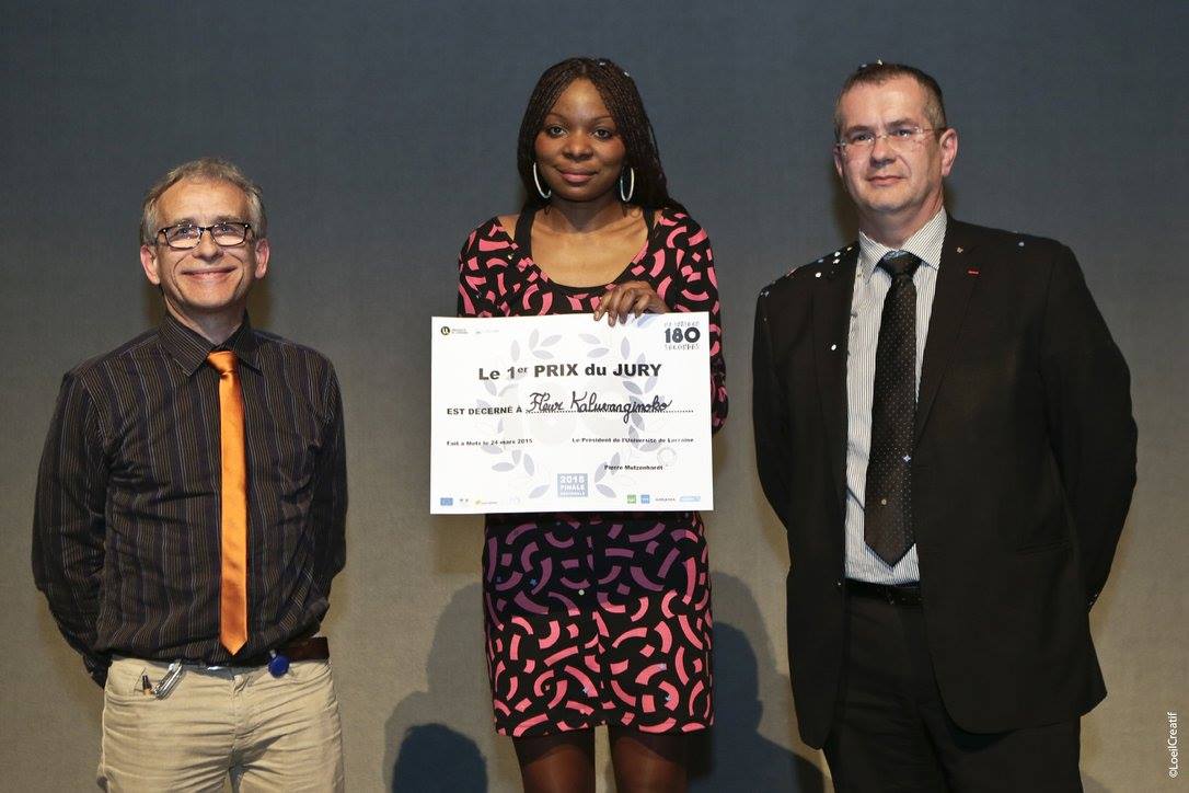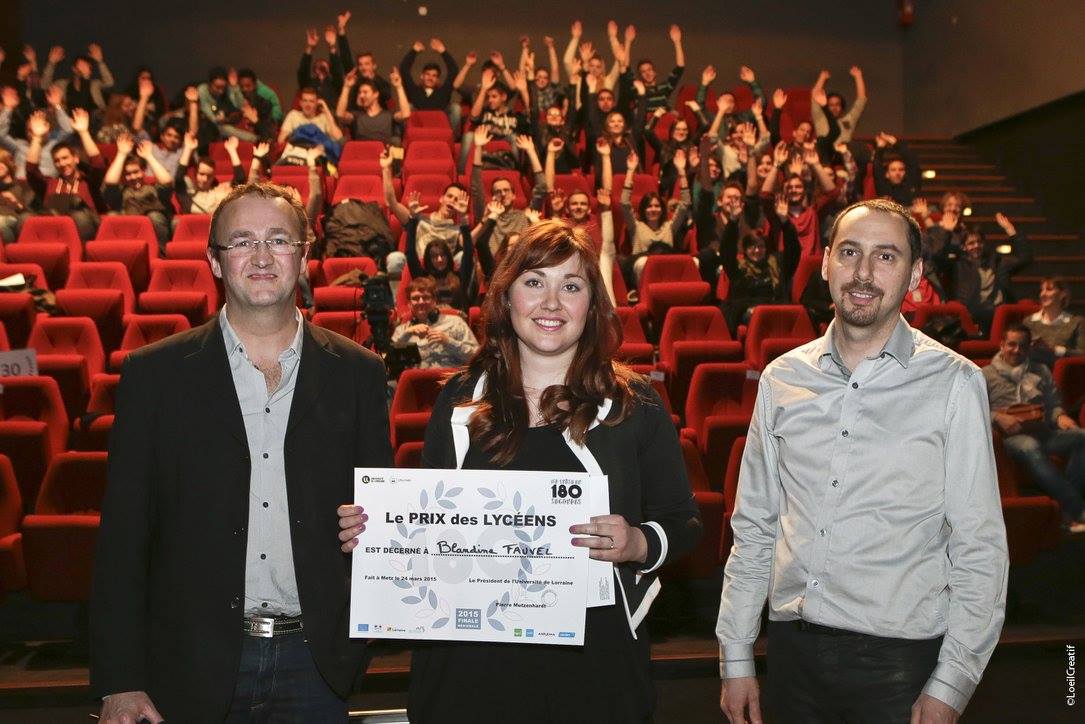 Plébiscitée à la fois par le jury et par le public, Fleur remporte le 1er prix du jury et le prix du public de la finale régionale du concours MT180 organisée le 24 mars au Théâtre du Saulcy de Metz