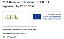 Du 15 au 19 juin 2015, la Faculté des Sciences et Technologies de Vandoeuvre-lès-Nancy accueillera la première école d’été Green IT organisée par le Master international Erasmus Mundus PERCCOM (PERvasive Computing & COMmunications for sustainable development).