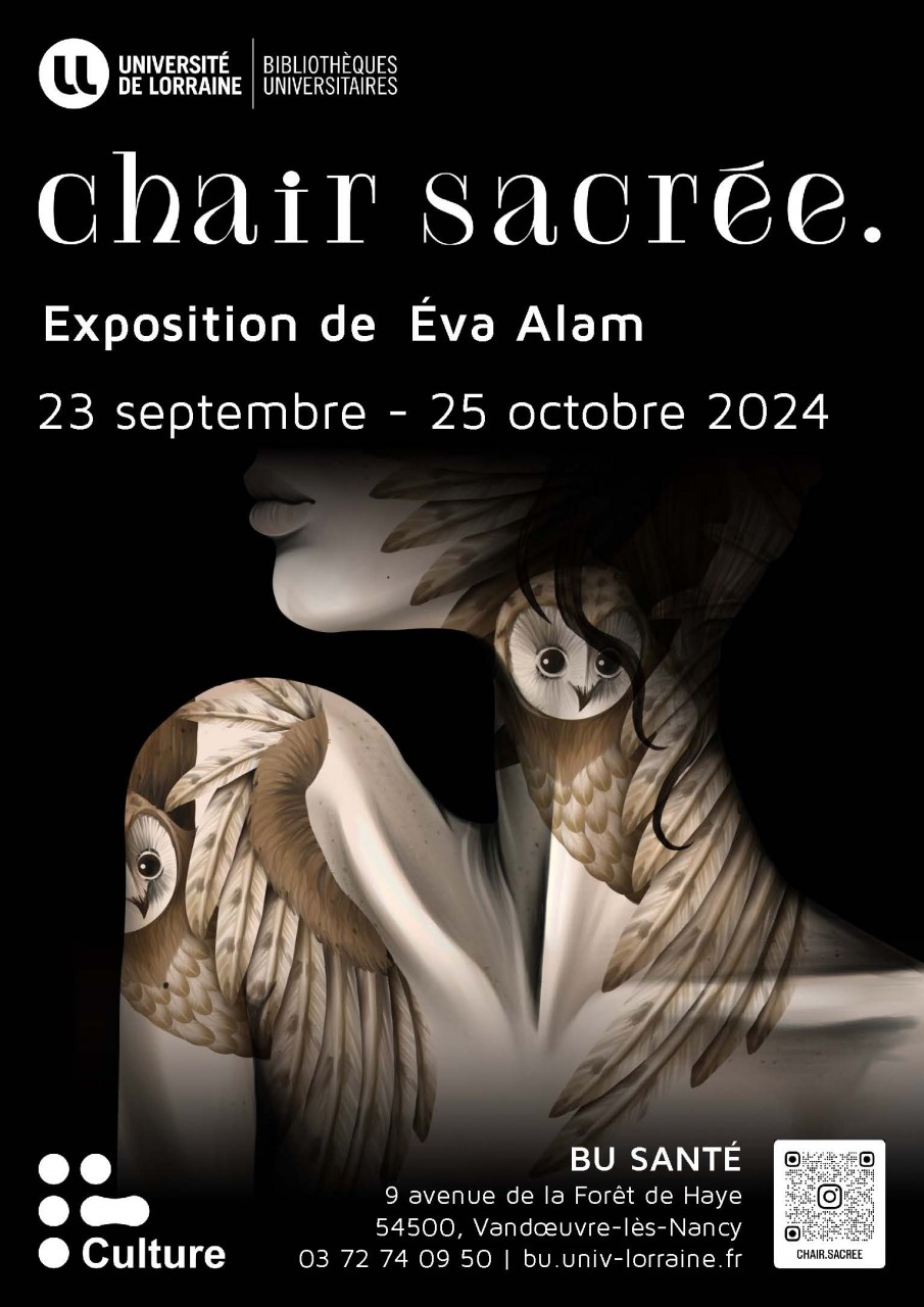 La BU Santé accueille l’exposition « Chair sacrée », une sélection d’illustrations réalisées par Éva Alam, du 23 septembre au 25 octobre 2024.