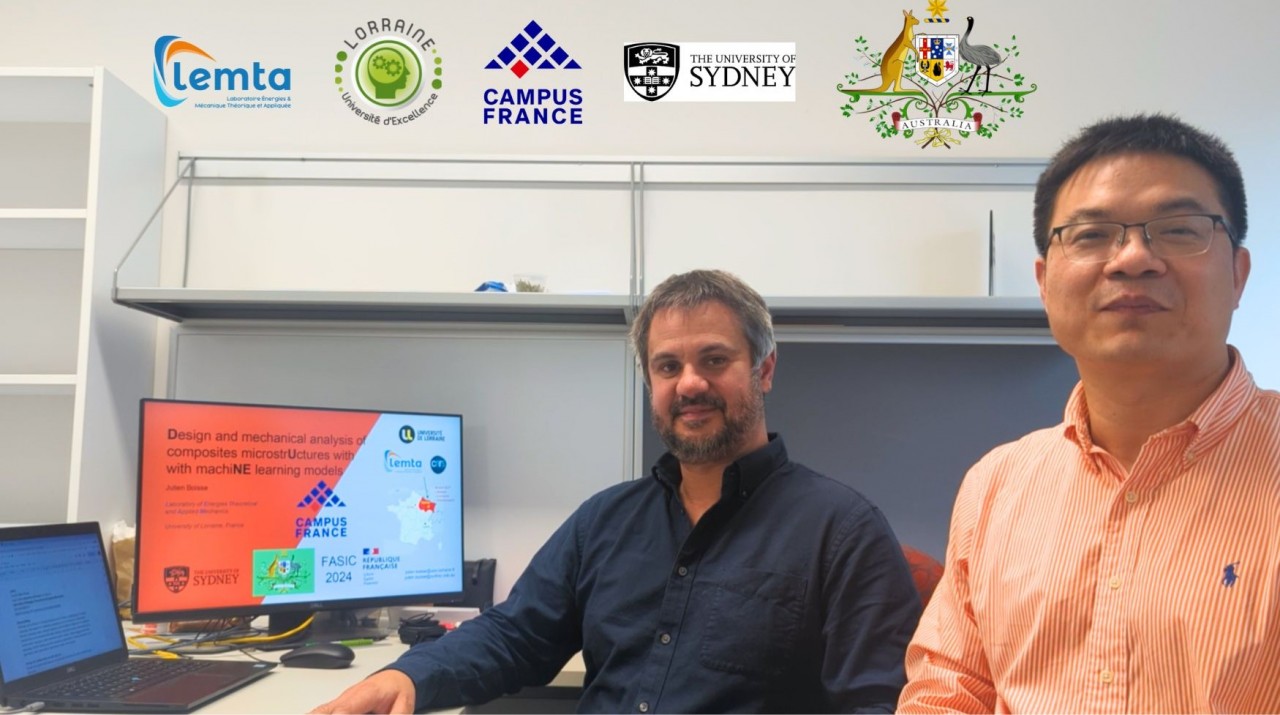 La mobilité dans la recherche ne me fait pas peur, même à l’autre bout du monde. Le CRCT offre l’opportunité unique de changer d’environnement de travail et de vivre une expérience marquante dans une carrière. J’ai ainsi eu la chance de rejoindre l’Université de Sydney. Grâce au soutien du LEMTA, du programme Widen Horizons de LUE et du programme PHC FASIC, j’ai collaboré étroitement avec le professeur Zhiyong Wang, directeur du laboratoire d’informatique multimédia au sein de la “School of Computer Science” de l’Université de Sydney. Cette institution jouit d’une renommée mondiale pour ses recherches en intelligence artificielle, technologies centrées sur l’humain, interaction homme-machine, architecture des systèmes informatiques, cybersécurité et traitement d’images. L’expertise de son équipe en vision par ordinateur m’a permis de maîtriser des outils avancés et des techniques innovantes, notamment l’application de réseaux de neurones génératifs de type « stable diffusion » pour le design de microstructures de composites optimales. Cette collaboration intercontinentale est destinée à perdurer.