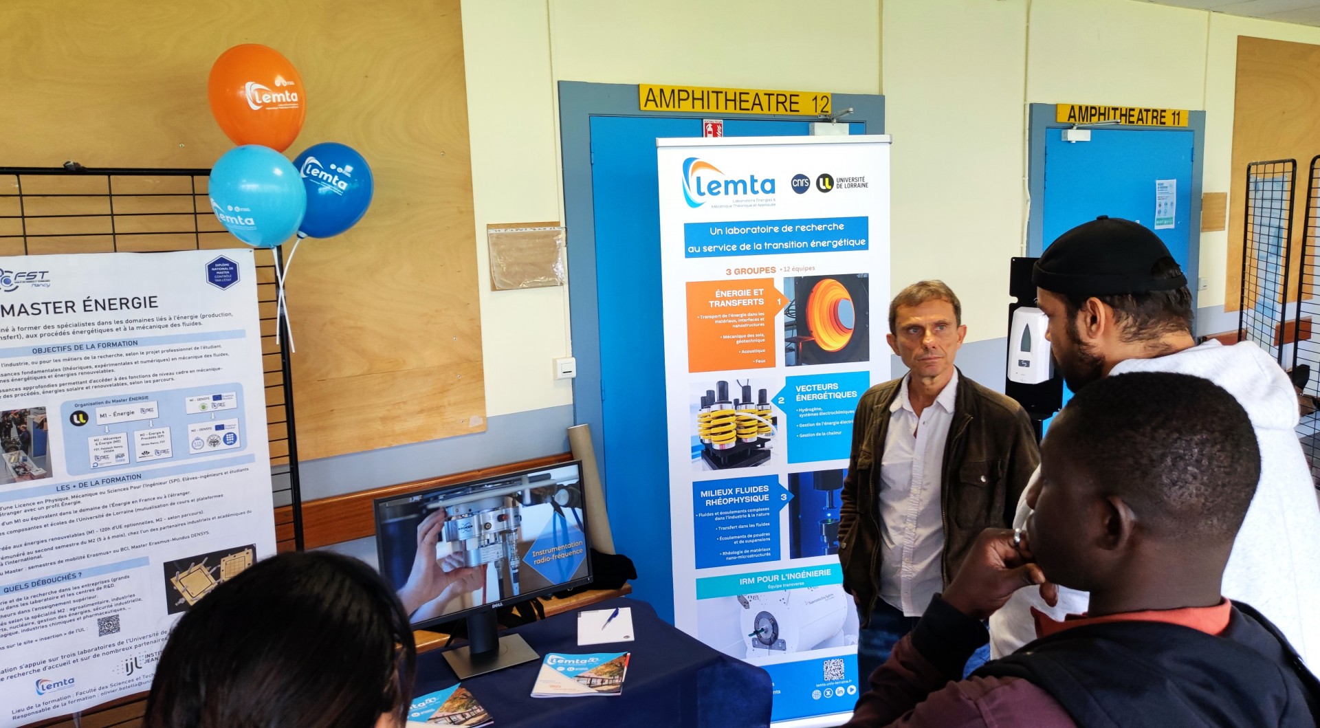 Lundi 23 septembre, le LEMTA était également présent sur le campus sciences dans le hall dédié aux stands formations de masters et aux dispositifs du programme ORION, avec 2 stands :
