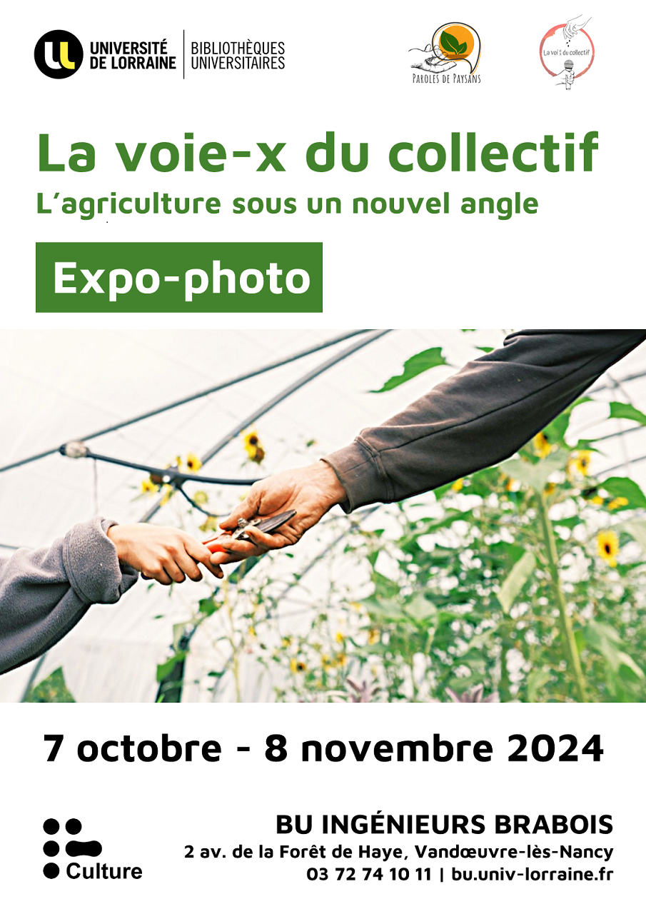 La bibliothèque universitaire Ingénieurs Brabois propose l’exposition "La voie-x du collectif – L’agriculture sous un nouvel angle", du 7 octobre au 8 novembre 2024.