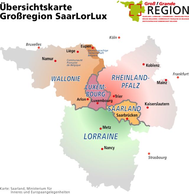 Interviewée par le quotidien Luxembourgeois Luxemburger Wort (LW), la Ministre-Présidente du Land de Sarre, Annegret Kramp-Karrenbauer (CDU), s’est entretenue, en marge des « Journées sociales du Luxembourg » le 9 mars, sur les 10 dernières de développement la Grande Région. La Ministre-Présidente fait un bilan qualitatif de ce qui a été réalisé et doit être réalisé et rend compte notamment des difficultés de l’Université de la Grande Région à mettre en place « un système transfrontalier de validation des semestres». : « Bien que le projet commun subsiste, les systèmes nationaux ne se coordonnent pas ». Annegret Kramp-Karrenbauer évoque ainsi l’initiative de mettre en place un « Droit expérimental » - Experimentierrecht – pour que les décisions, au sein de la Grande Région, soient prises, sous forme de test, indépendamment du droit national. Elle estime enfin que la fusion des régions Alsace, Lorraine, et Champagne-Ardenne, (« Alca ») pourrait contribuer à une nouvelle « dynamique nationale » de la Grande Région : « Plus nous serons grand, plus nous pourrons faire valoir notre influence au niveau national et à Bruxelles. Avec Nancy, Metz, Luxembourg et Sarrebruck, ... nos villes constituent sûrement le cœur de cette Grande Région ».