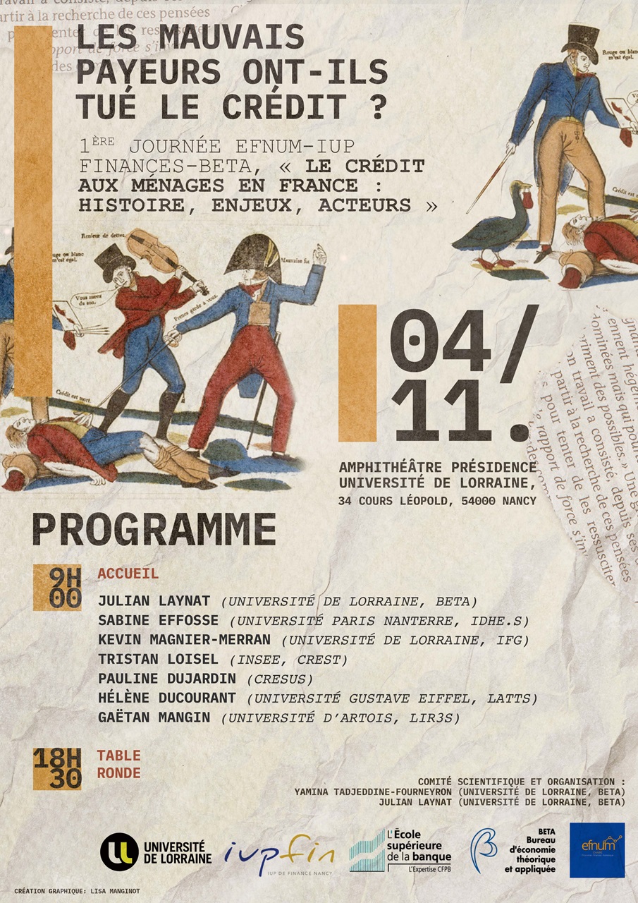 La journée scientifique du 4 novembre 2024, co-organisée par le département IUP Finance de la Faculté de Droit, Sciences économiques et Gestion de Nancy, le laboratoire de recherches BETA et la Chaire EFNUM, sous la direction scientifique de Yamina Tadjeddine-Fourneyron (professeure à l'Université de Lorraine, BETA) et Julian Laynat (Doctorant à l'Université de Lorraine, BETA), est consacrée à la question de l’endettement des ménages.