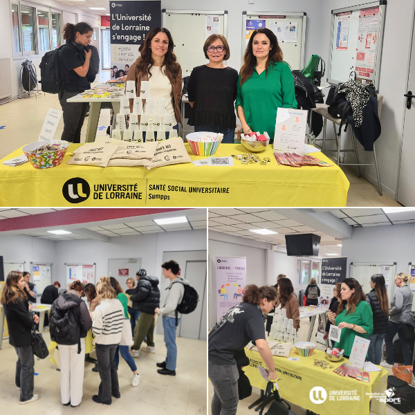 Le lundi 14 octobre 2024, la Faculté des sciences du sport a accueilli le Service de santé étudiante du Vélodrome (SSE) au sein de ses locaux. Aurélie Bianchi, Catherine Squillace et Julie Ferry, trois infirmières du service, étaient présentes pour sensibiliser les étudiants à des thématiques importantes en matière de santé.