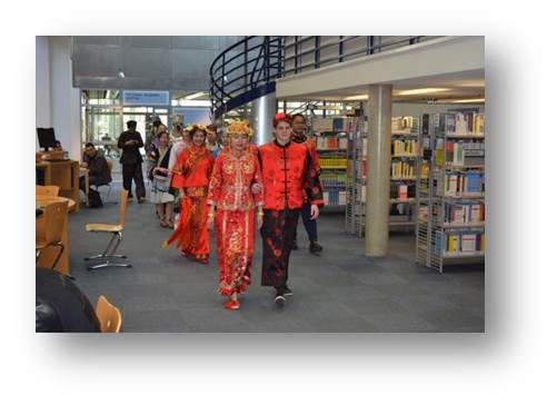Dans le cadre des actions culturelles des Journées des Arts et de la Culture dans l’Enseignement Supérieur (JACES) et des activités de l’Institut Confucius de l’Université de Lorraine, ce dernier, en collaboration avec la Direction de la Documentation et de l’Edition, a organisé un défilé de costumes traditionnels chinois au sein de la Bibliothèque Universitaire du Saulcy.