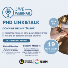 Depuis début novembre 2024, le réseau Alumni a lancé une série de webinaires PhD « Link&Talk ».
