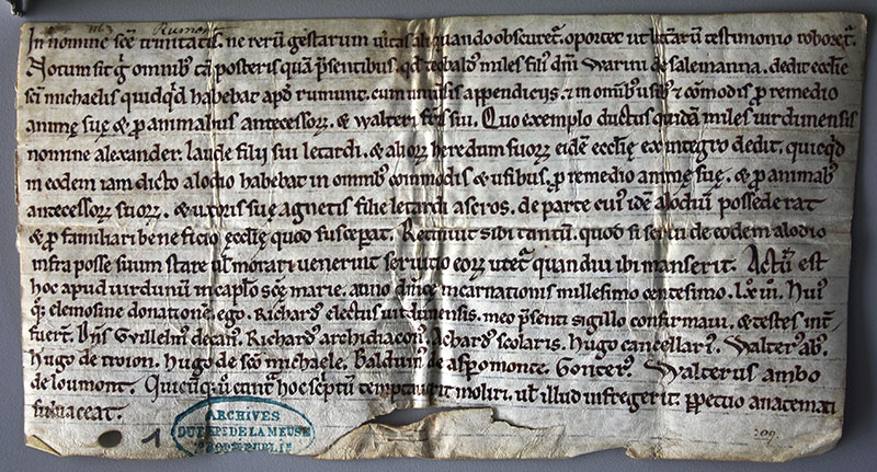 Il y a plusieurs manières d’étudier le passé. La journée d’études Actes des laïques/actes des ecclésiastiques : la production de l’écrit documentaire dans l’espace lotharingien proposait de s’attacher aux caractères externes des chartes* rassemblées dans la base Chartes originales (1121-1220) conservées en France, c’est-à-dire à leur aspect visuel : format du manuscrit, style de calligraphie, mise en page, technique d'apposition du sceau.