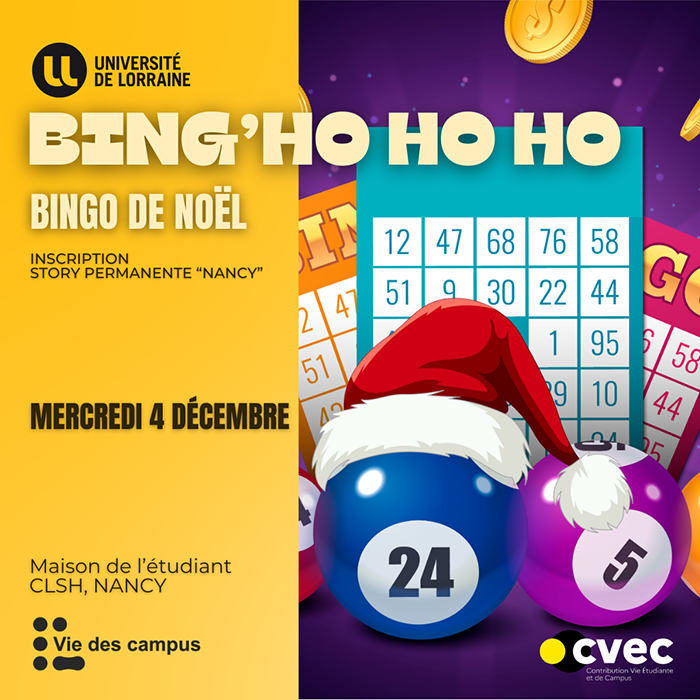 C'est bientôt la fin de l'année et ta MDE te réserve plein de belles surprises. Viens participer à notre Bing'Ho Ho Ho ! Les plus chanceux d'entre vous pourront ouvrir les cases de notre calendrier Bingo remplies de surprise !