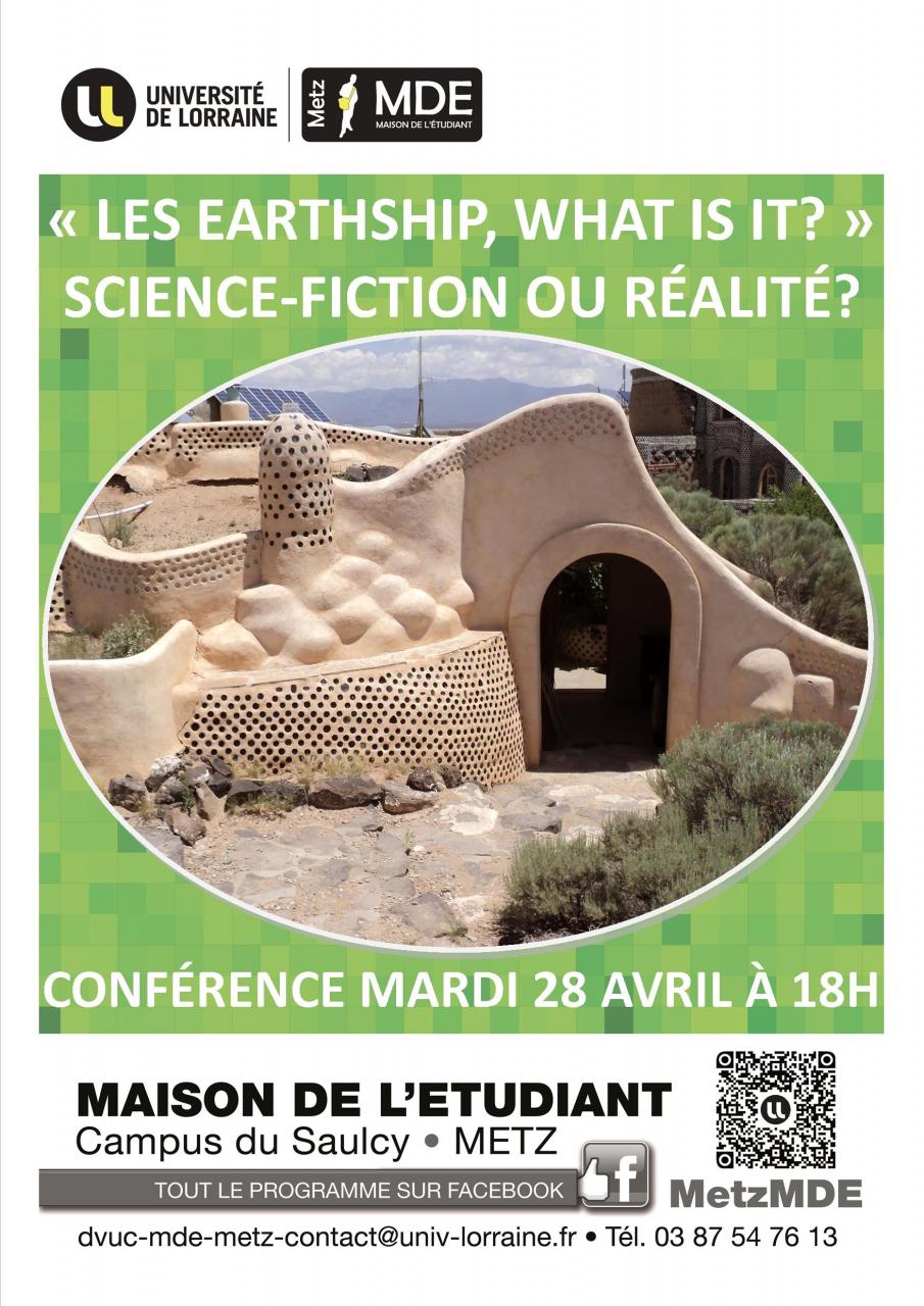 Cécile Garcia, étudiante en L1 de psychologie vous propose de découvrir les « Earthships », expérimentations d’habitations autosuffisantes, à l’occasion d’une présentation qui s’appuiera sur des exemples et extraits de documentaires vidéo.