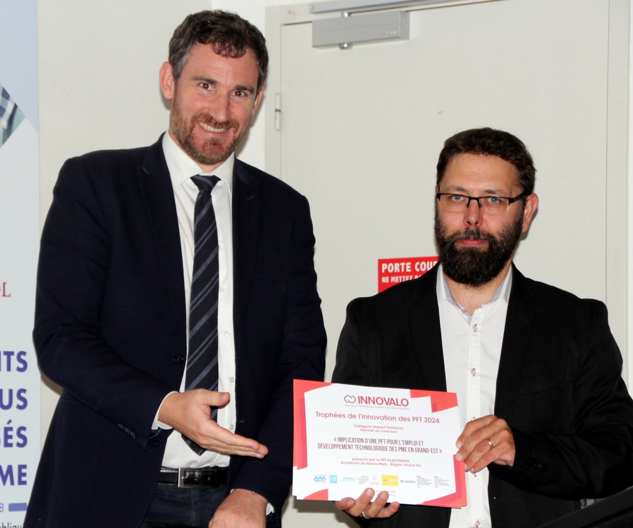 Le récipiendaire de ce prix, ici délivré par le responsable de projet Territoires d’industrie du Département de l’innovation - Direction de l’investissement de la Banque des Territoires (Christopher DE LABURTHE) au nom de l’association nationale des PFT INNOVALO était…