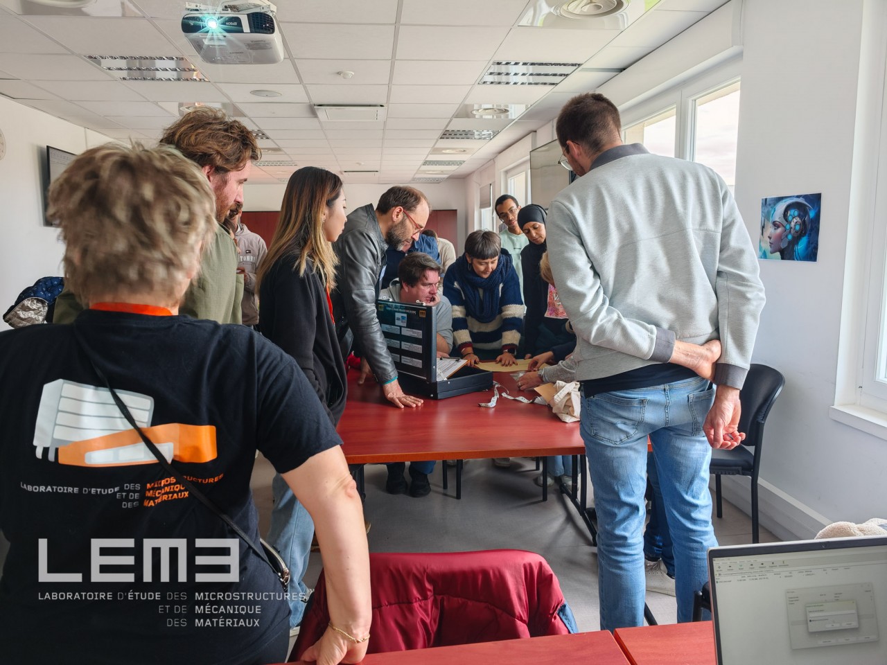 La Fête de la Science 2024 au LEM3 s’est terminée par deux sessions d’escape game le samedi 12 octobre. Menacé de perdre ses précieuses données, le laboratoire a fait appel aux meilleurs experts, petits et grands. Leur mission ? Sauver des années de recherche en résolvant les énigmes disséminées dans divers ateliers : « Alliages à mémoire de forme », « Circuits imprimés », « Microscopie électronique à balayage », « Intelligence artificielle » et « Traitement thermique », tout en jouant la montre !