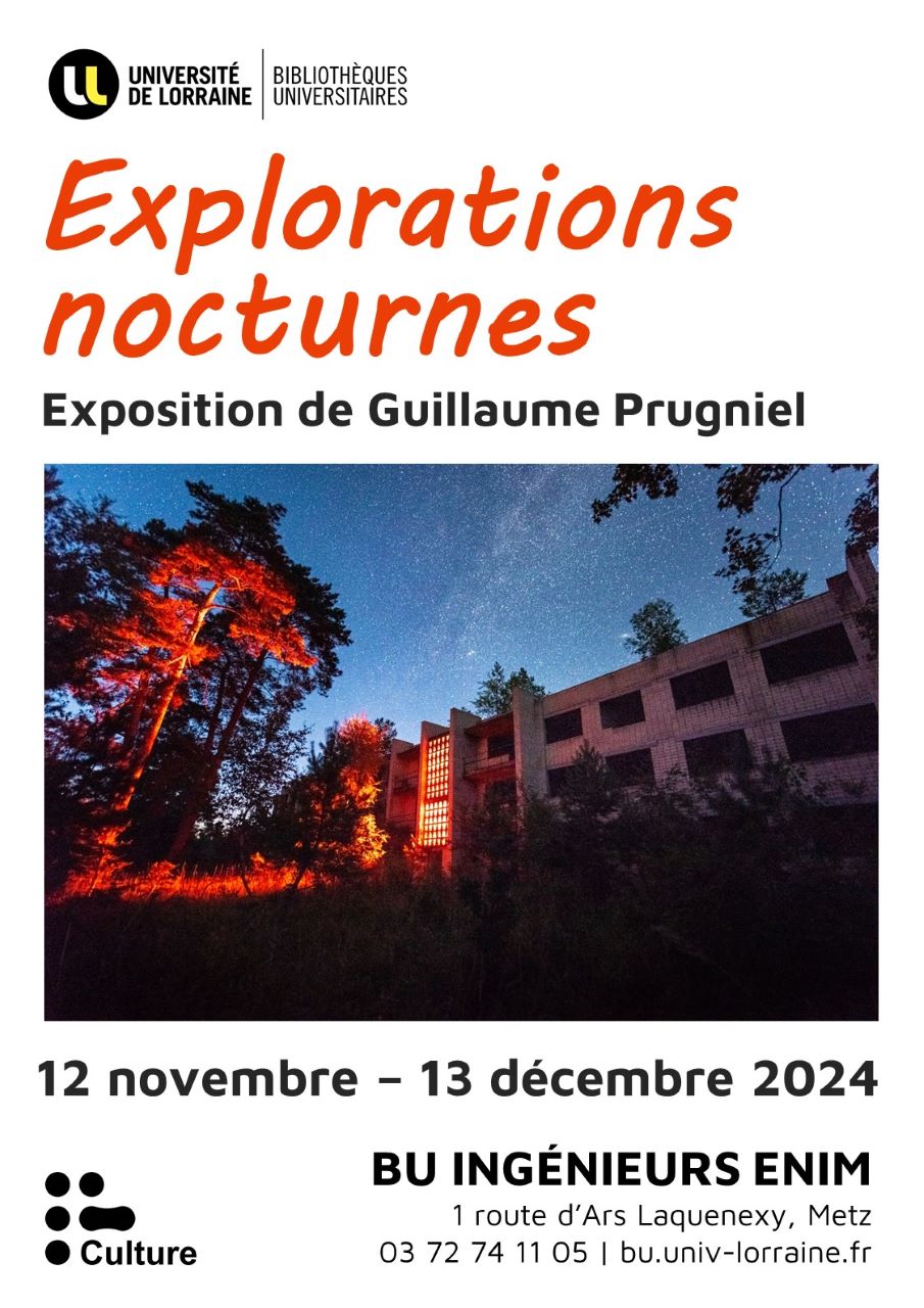 La BU ENIM accueille l’exposition "Explorations nocturnes", une sélection de photographies réalisées par Guillaume Prugniel, du 12 novembre au 13 décembre 2024.