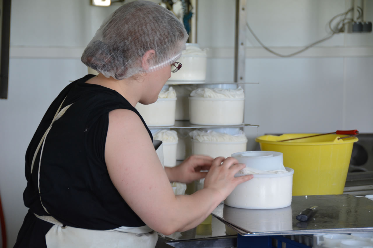 Entre 2003 et 2014, Christophe reçoit le renfort de Sébastien, Aurélien et Sophie. Issu d’un bac professionnel agricole, Sébastien a commencé par partager son temps entre les vaches et les chèvres avant d’être affecté à temps plein à l’atelier chèvres. Aurélien est arrivé l’an dernier, après s’être réorienté dans son parcours en maçonnerie. Quant à Sophie, master en industrie laitière en poche, elle a rejoint l’équipe dans la perspective de la construction d’une fromagerie adossée à l’atelier laitier (vaches) et de la rénovation de la fromagerie (chèvres). Pour l’heure, tous les quatre se relaient chaque jour pour prendre soin du troupeau, des traites et de la production des fromages. Christophe Beche assure les livraisons et rencontre les clients.