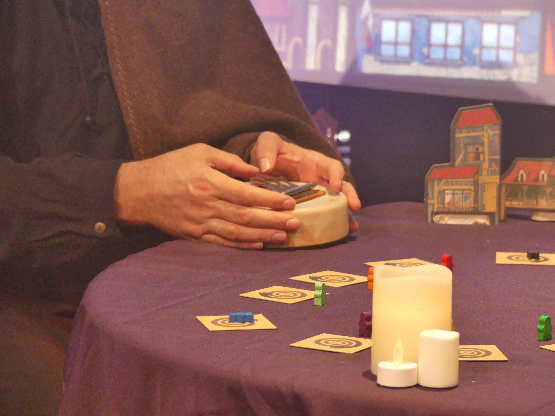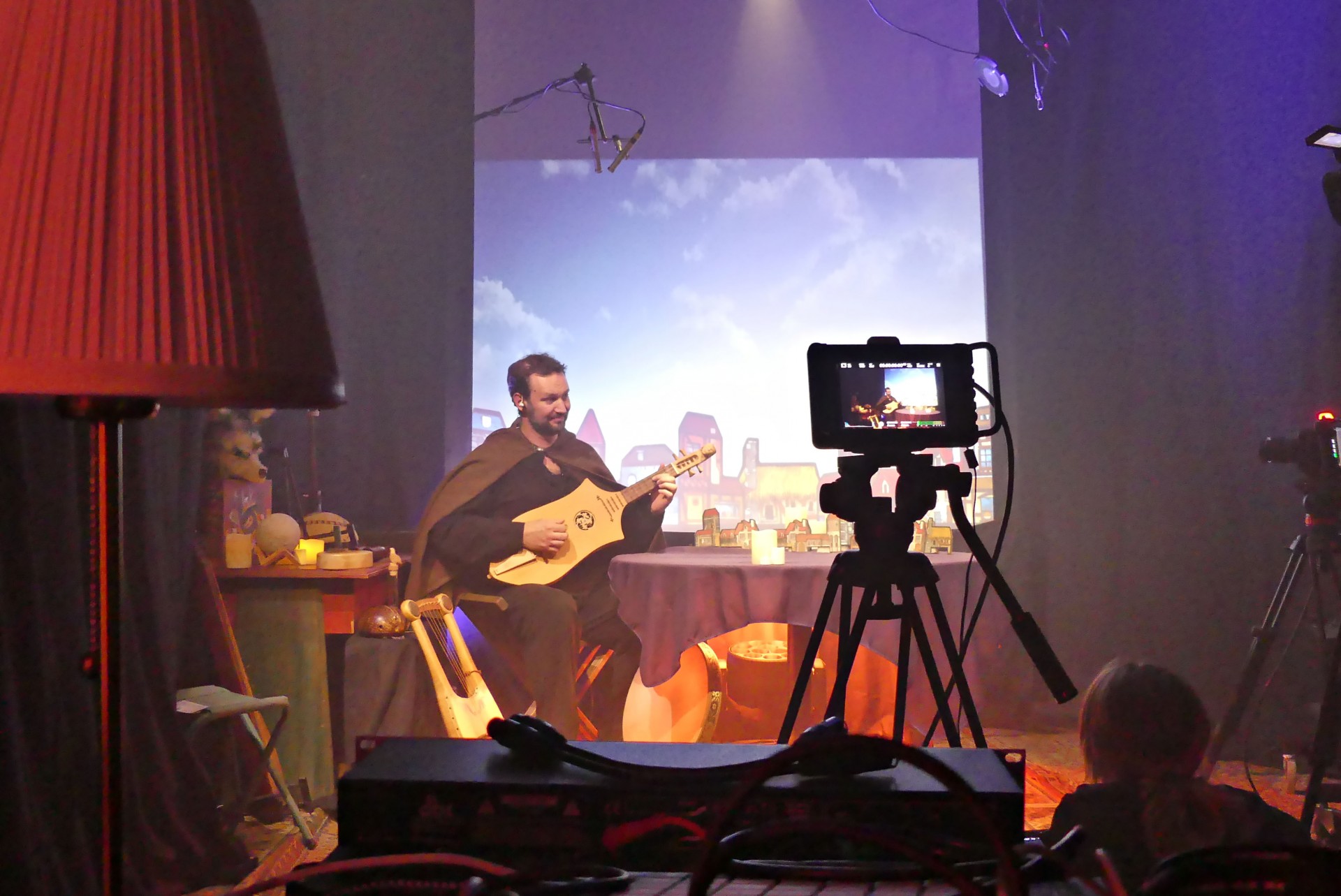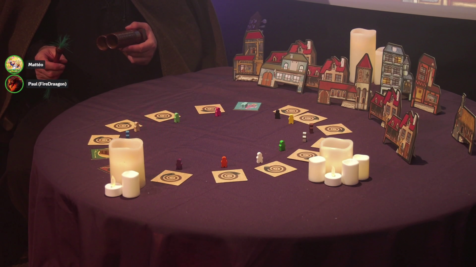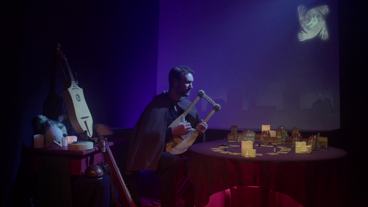 Pensée comme une véritable performance live, la partie s’est déroulée dans un set-up au poil, quatre caméras étaient prévues pour filmer le conteur. Un décor et des animations en fond créaient une ambiance mystique. Il était possible pour les joueur.euses qui n’étaient pas dans la game de suivre sur Youtube toute la partie en live.