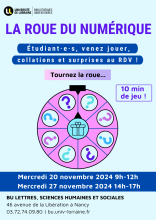 La BU Lettres, Sciences Humaines et Sociales de Nancy organise deux demi-journées ludiques « La roue du numérique » dans le cadre du lancement de l’espace « Ma BU en ligne ».