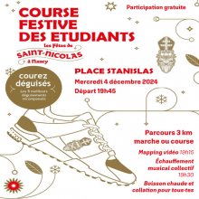 Prépare ton meilleur costume et tes baskets pour t’échauffer en musique et t’élancer sur 3 km. Comme chaque année, la course est gratuite et ouverte aux étudiant·es et personnels alors on vous attend nombreux·ses pour le départ place Stanislas à Nancy !