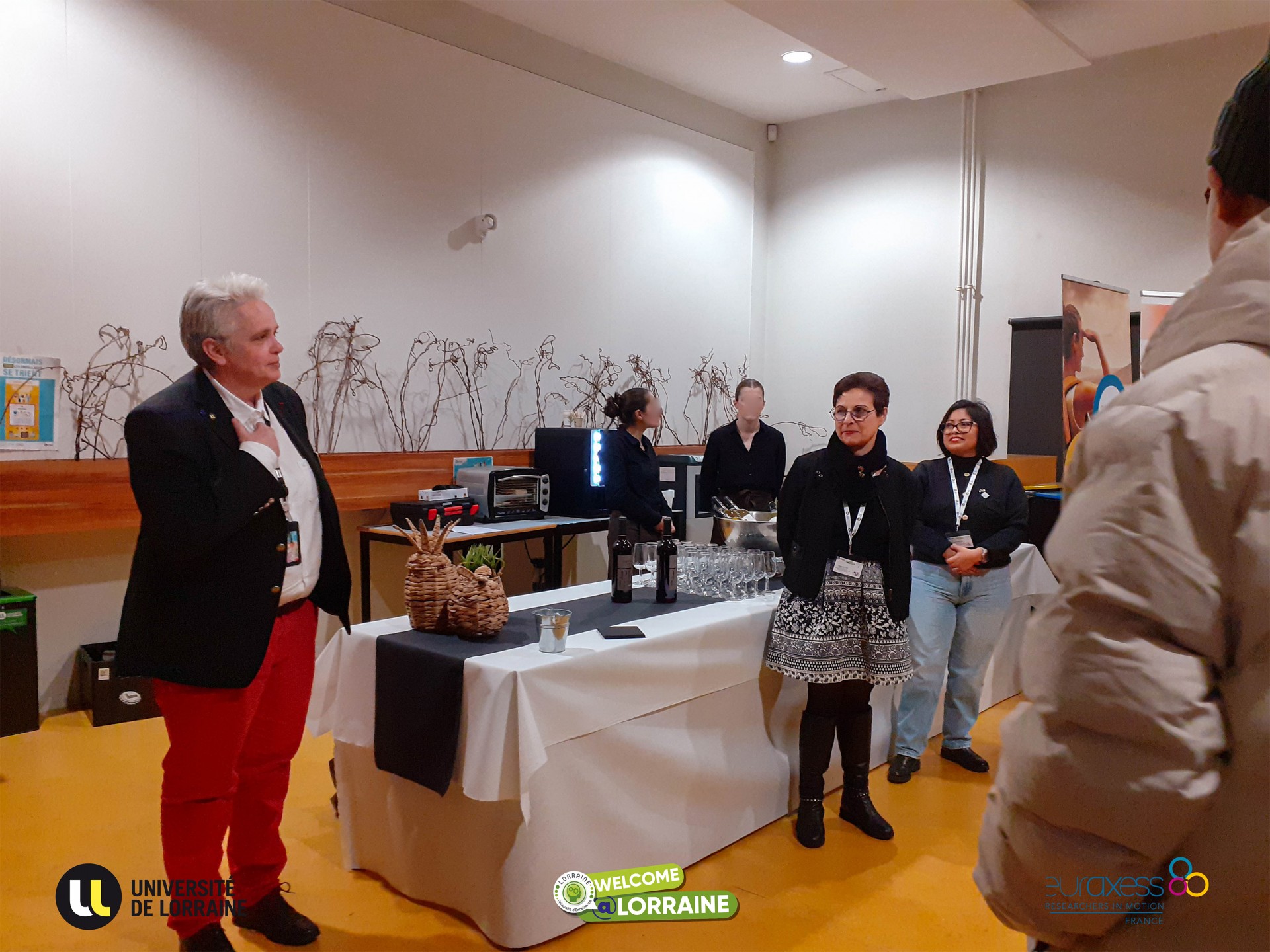 Après la visite, un moment d’accueil et d’échange a eu lieu à Leopold, avec un discours chaleureux de bienvenue. La DVUC (Direction de la Vie Universitaire et Culturelle) a profité de l’occasion pour présenter les services culturels et sociaux offerts aux employés de l’Université de Lorraine. S’en est suivie une présentation du SUAPS (Service Universitaire des Activités Physiques et Sportives) et des activités sportives accessibles aux personnels, qui contribuent largement à leur bien-être et à leur intégration au sein de la communauté universitaire.