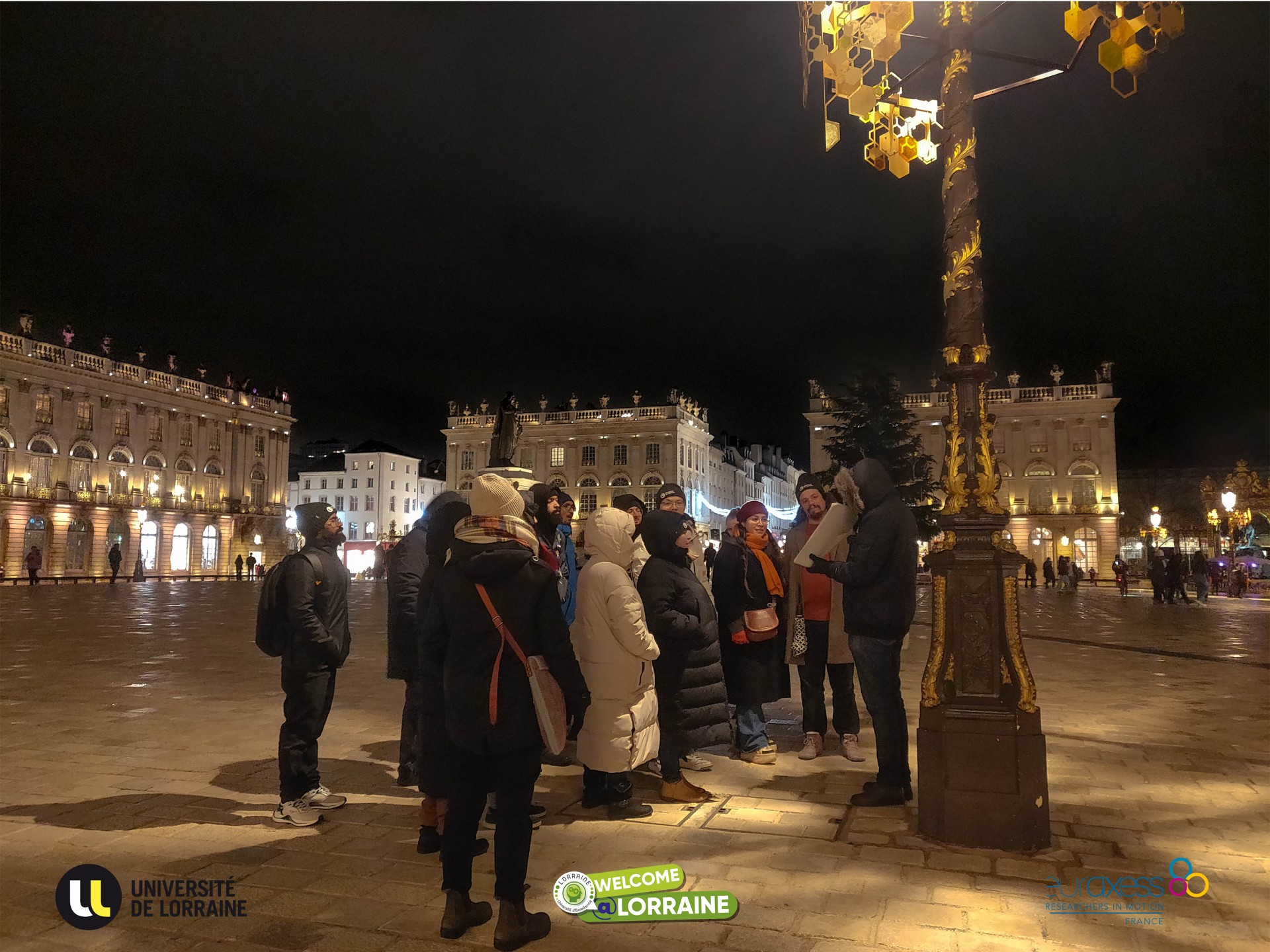 La soirée a débuté par une visite guidée de la ville, proposée en français et en anglais, permettant aux participants de s’immerger dans l’histoire et l’architecture de Nancy. Du somptueux décor de la place Stanislas aux ruelles pittoresques du centre historique, les presque 40 participants – représentant 23 laboratoires et 15 nationalités – ont été émerveillés par les trésors de la ville.