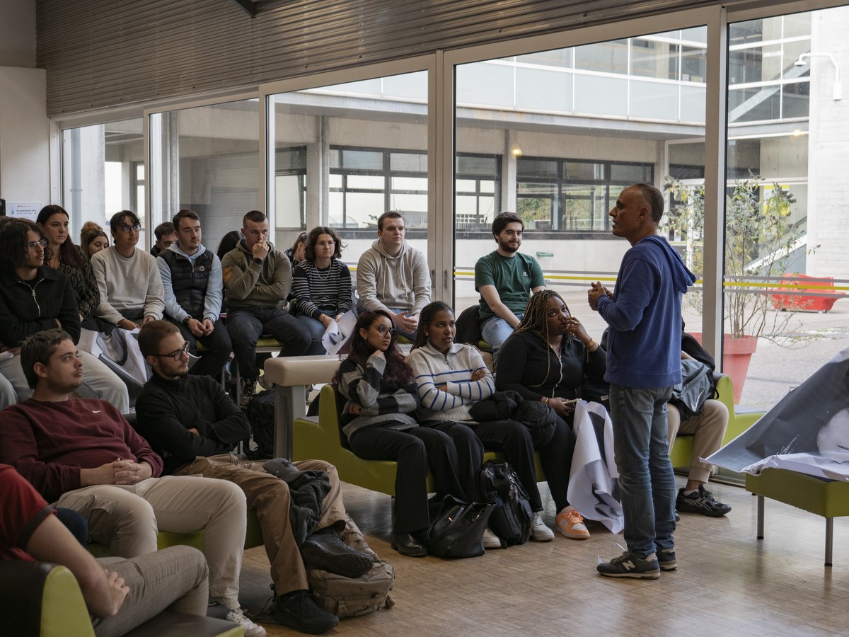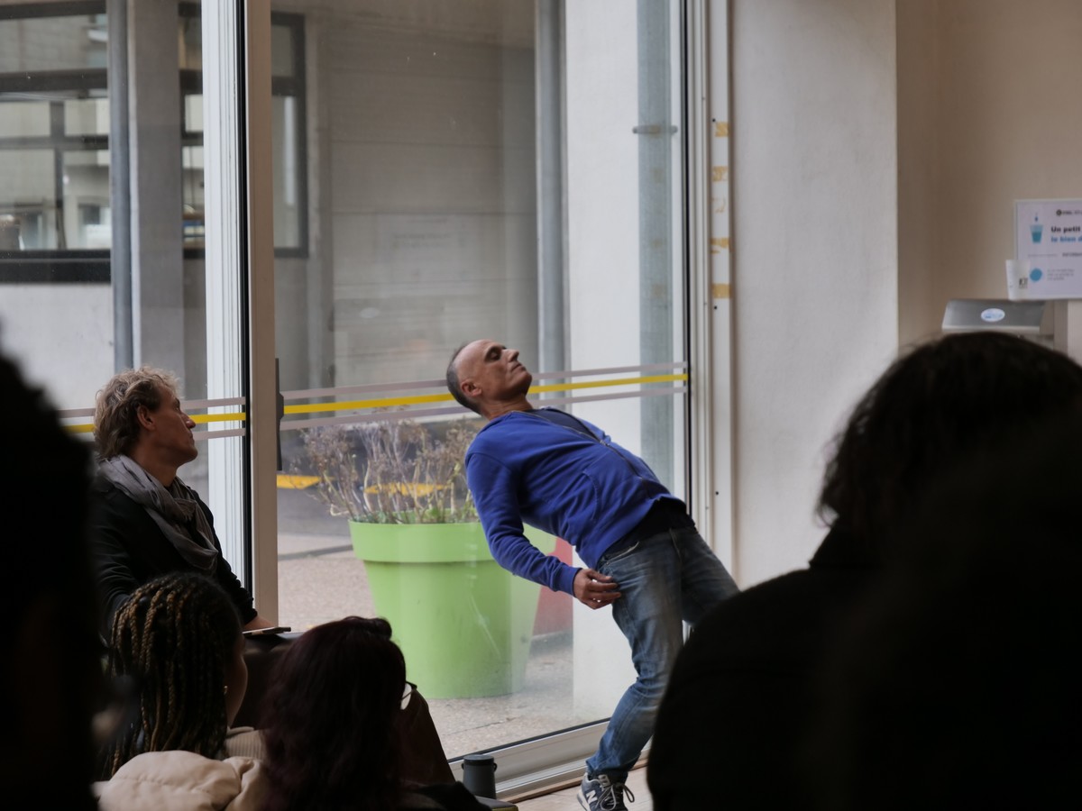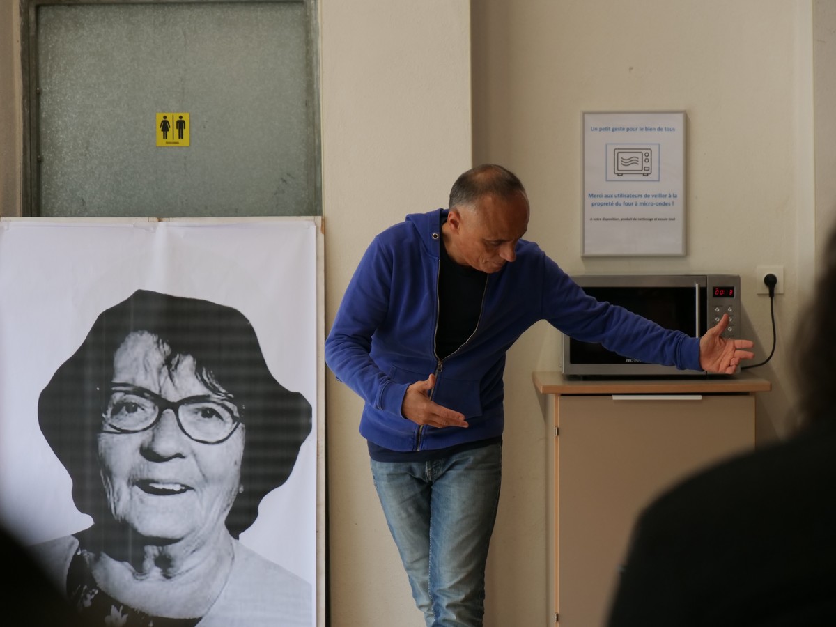 Après la représentation, l’artiste a expliqué aux participants la genèse de son projet et la manière dont il a été créé. Ce spectacle a été financé par la DVUC en lien avec un projet Vie Universitaire.