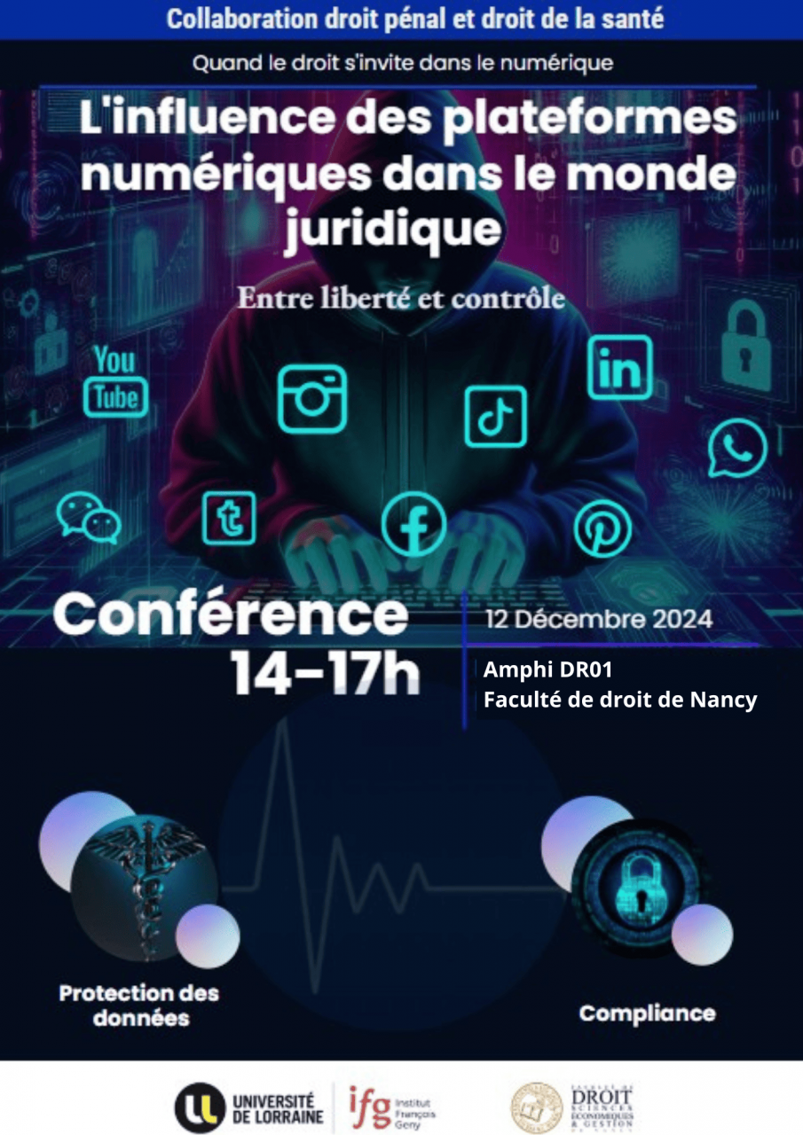 Animée par des étudiants de M1 pénal et santé, des experts du numérique, cette conférence explore les enjeux des plateformes numériques et leur cadre légal.