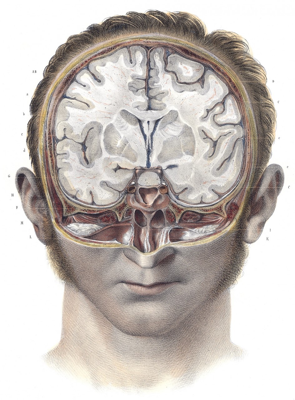 Esquissée par Gall et Spurzheim, la phrénologie prétend que les bosses du crâne sont susceptibles de refléter la surface extérieure du cerveau, et que le cortex est constitué d’une mosaïque dont chaque élément contrôle un aspect donné du comportement humain. Au dix-neuvième siècle, cette conception se trouve expérimentalement récusée par la localisation de régions cérébrales en lien effectif avec les différentes fonctions organiques.