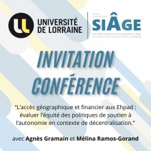 Invitation Conférence" L’accès géographique et financier aux Ehpad : évaluer l’équité des politiques de soutien à l’autonomie en contexte de décentralisation. "avec Agnès Gramain et Mélina Ramos-Gorand