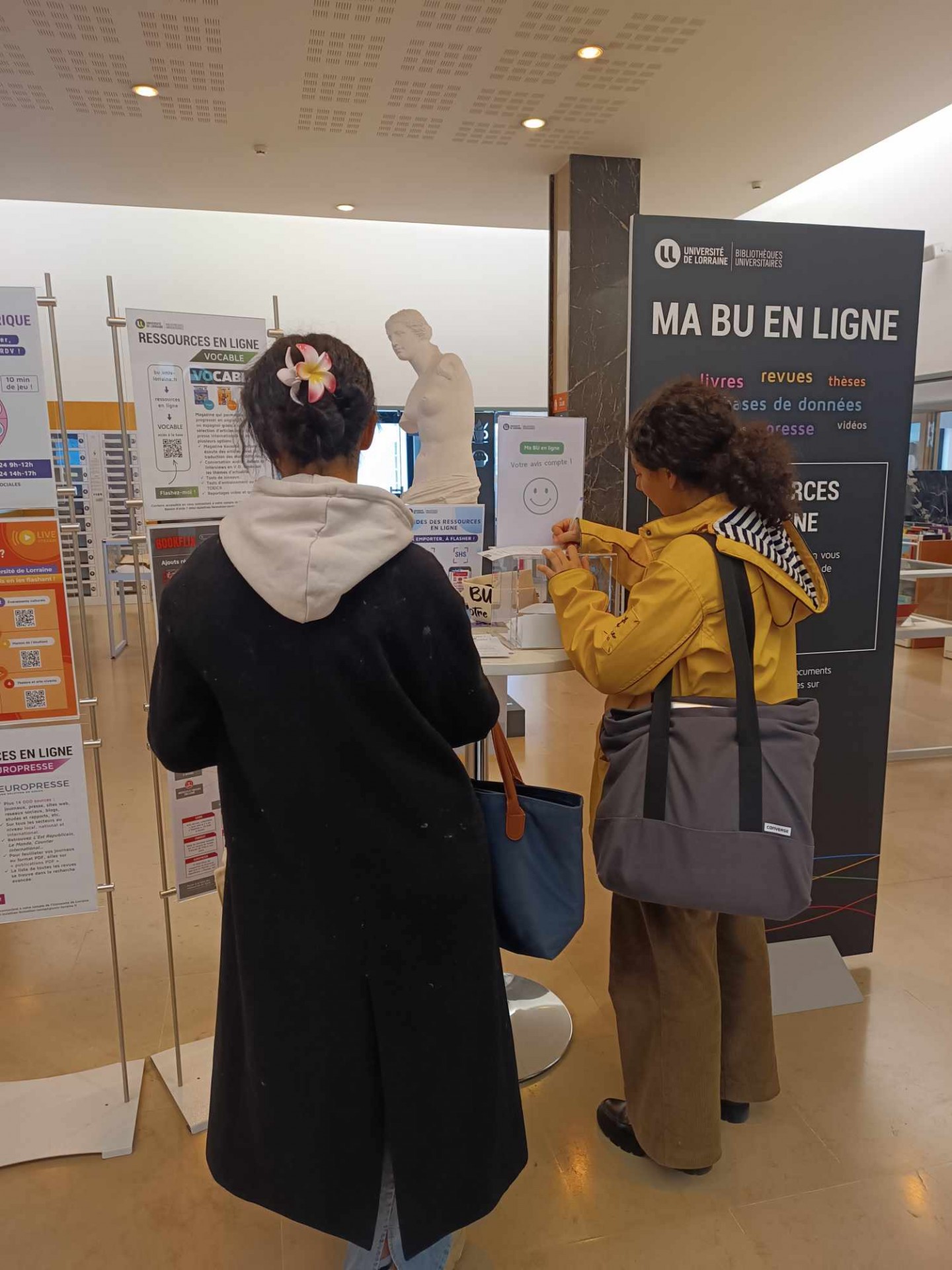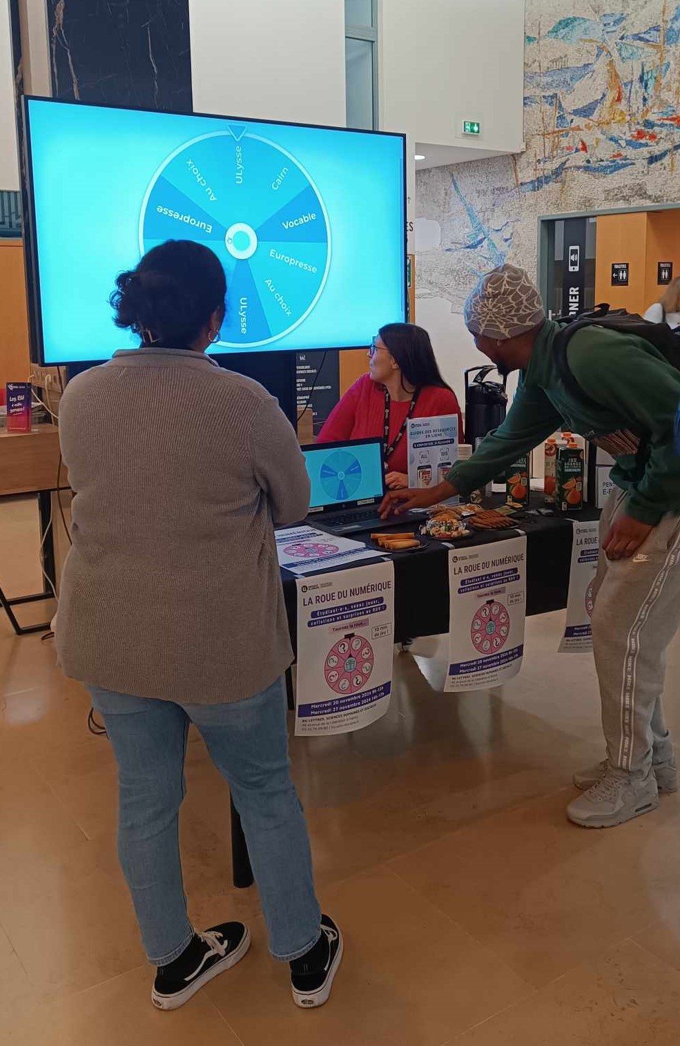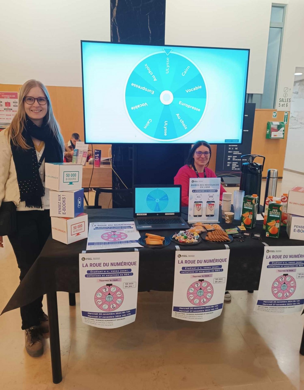 La BU Lettres a organisé l’atelier ludique « La roue du numérique » le mercredi 20 novembre 2024 matin et le mercredi 27 novembre après-midi. À destination de tous les étudiants, l’objectif est de leur faire (re)découvrir les ressources en ligne essentielles mises à disposition par l’Université de Lorraine.