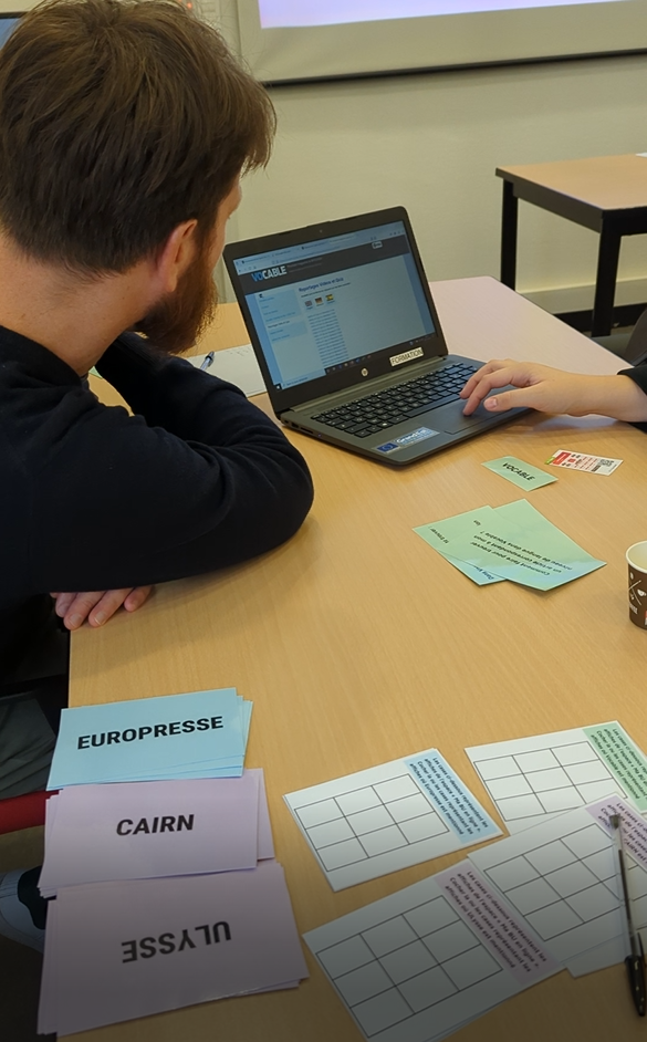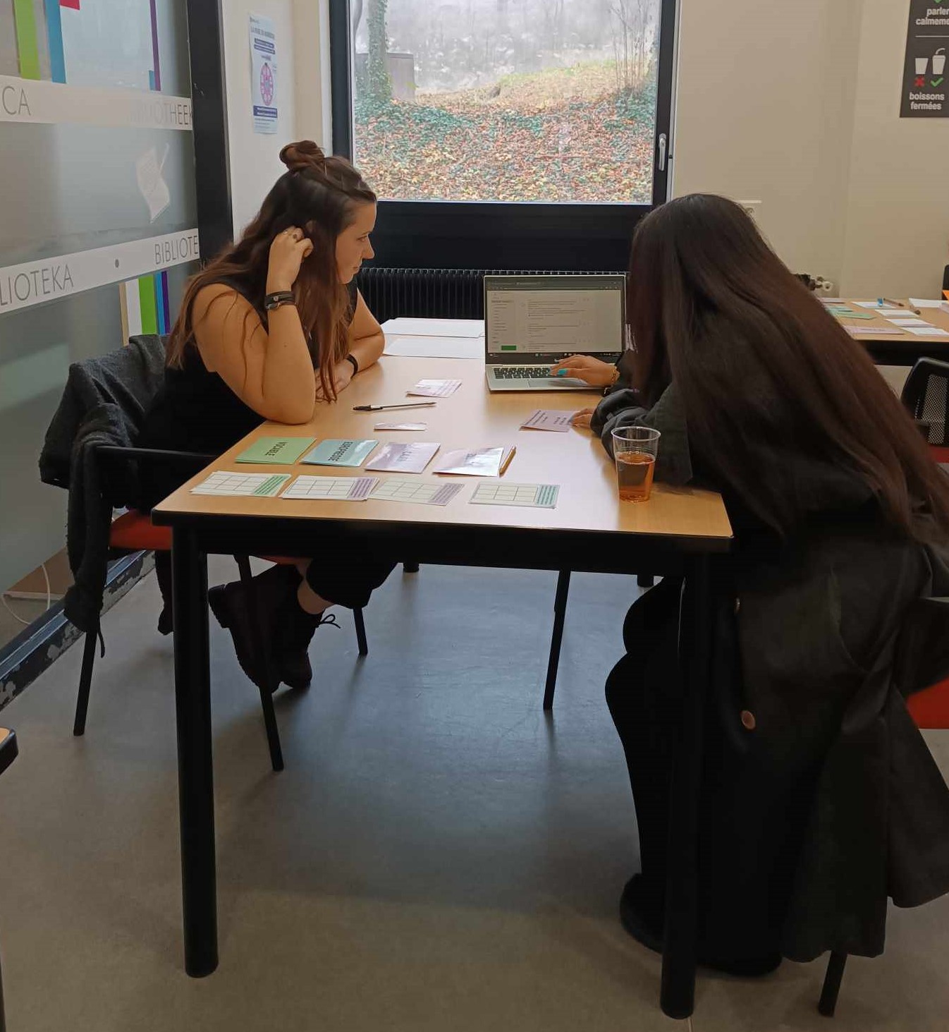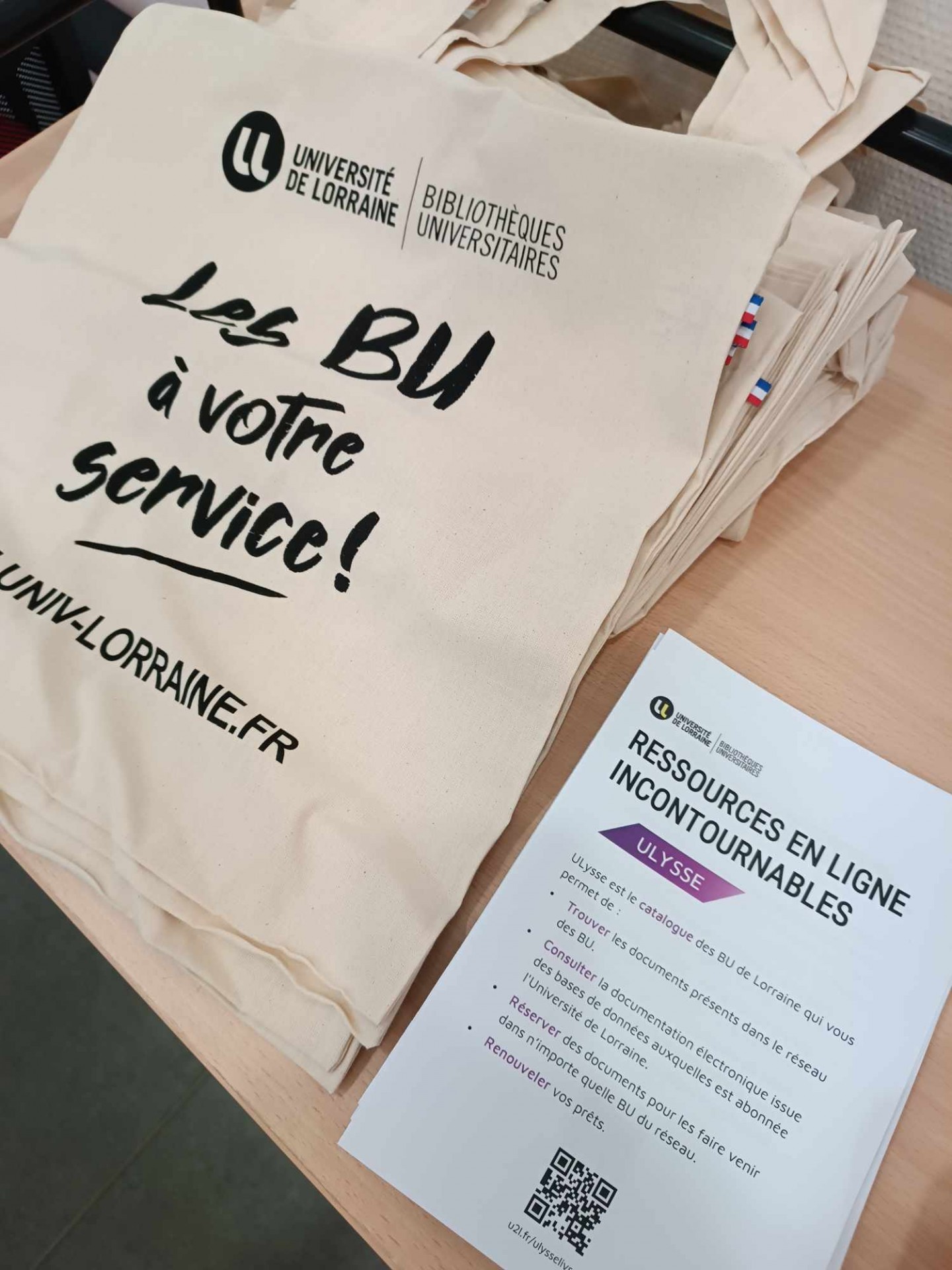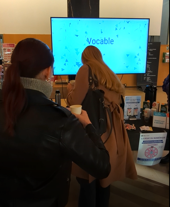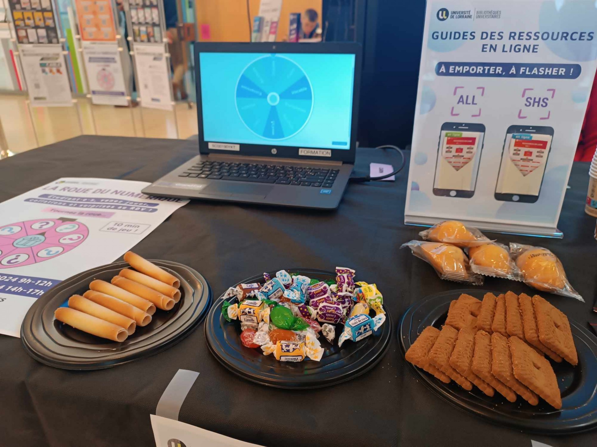 Les participants ont répondu à un quiz sur une des bases de données déterminée au hasard par la roue numérique. Boissons et friandises à disposition, c’était l’occasion pour eux de passer un moment convivial et privilégié avec les six bibliothécaires présents pour les accompagner et répondre à leurs questions. Les étudiantes et étudiants en ont appris davantage sur ULysse, CAIRN, Europresse ou Vocable et se sont appropriés l’espace Ma BU en ligne. Un tote bag et un livret récapitulatif sur les ressources incontournables leur ont été offerts à la fin du jeu.