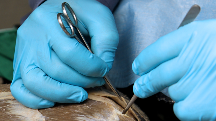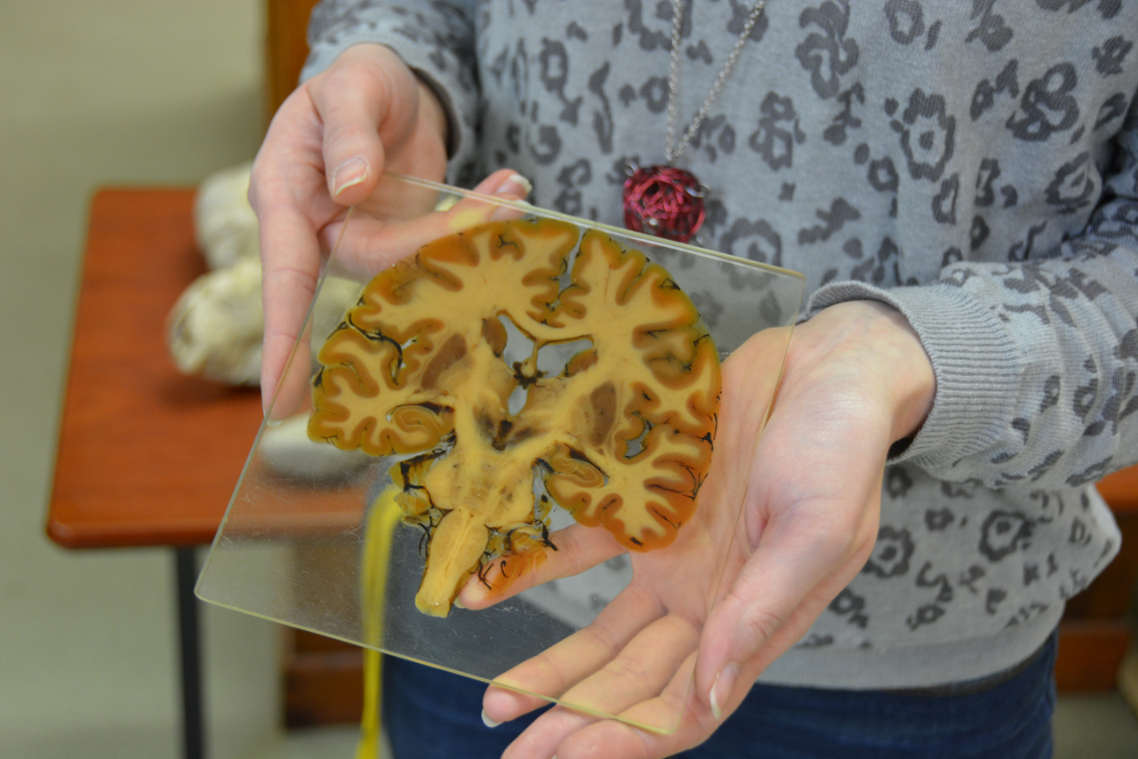 Depuis toujours, la Faculté de Médecine possède et entretien un musée qui accueille plusieurs collections surprenantes de pièces anatomiques destinées à la formation des étudiants en médecine. Les magnifiques meubles d’époque (fin XIXe siècle) accueillent des pièces d’origines humaines et animales conservées sous différentes formes et notamment grâce à la plastination, une méthode de conservation que maîtrise parfaitement Jean-Michel Arnoux. Inventée par le professeur Gunther von Hagens, anatomiste allemand né en 1945, cette technique éternise le corps en remplaçant les liquides organiques par du silicone. Formé par ce dernier, Jean-Michel Arnoux est une référence en la matière. Il est d’ailleurs très souvent sollicité par ses homologues francophones pour transmettre son savoir-faire. Marine profite au quotidien de l’expérience de son collègue. Une aubaine !