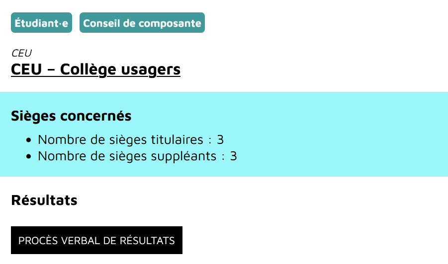 Par exemple, je suis étudiant ou étudiante au CEU et je veux connaître les résultats de mon scrutin :
