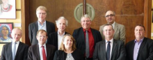 L’Enseignement Supérieur en région Grand Est n'a pas attendu la mise en œuvre de la réforme territoriale pour engager des démarches de dialogue et de rapprochement entre ses différents établissements. Gilles Baillat, président de l’Université de Reims Champagne-Ardenne, Alain Beretz, président de l’Université de Strasbourg, Christine Gangloff, présidente de l’Université de Haute-Alsace, Pierre Koch, directeur de l’Université Technologique de Troyes et Pierre Mutzenhardt, président de l’Université de Lorraine, se sont ainsi réunis à Reims mardi 14 avril 2015 pour une première rencontre de travail.