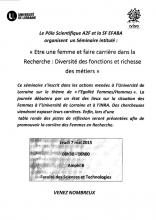 Ce séminaire s’inscrit dans les actions menées à l’Université de Lorraine sur le thème de « l’Egalité Femmes/Hommes ». La journée débutera par un état des lieux sur la situation des Femmes à l’Université de Lorraine et à l’INRA. Des chercheuses viendront exposer leurs carrières. Enfin, lors d’une table ronde des pistes de réflexion seront présentées afin de promouvoir la carrière des Femmes en Recherche.