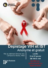 Le Service de Santé Étudiante (SSE) de Metz vous propose deux journées de dépistage VIH et IST anonymes et gratuits sur le Campus du Saulcy à Metz.