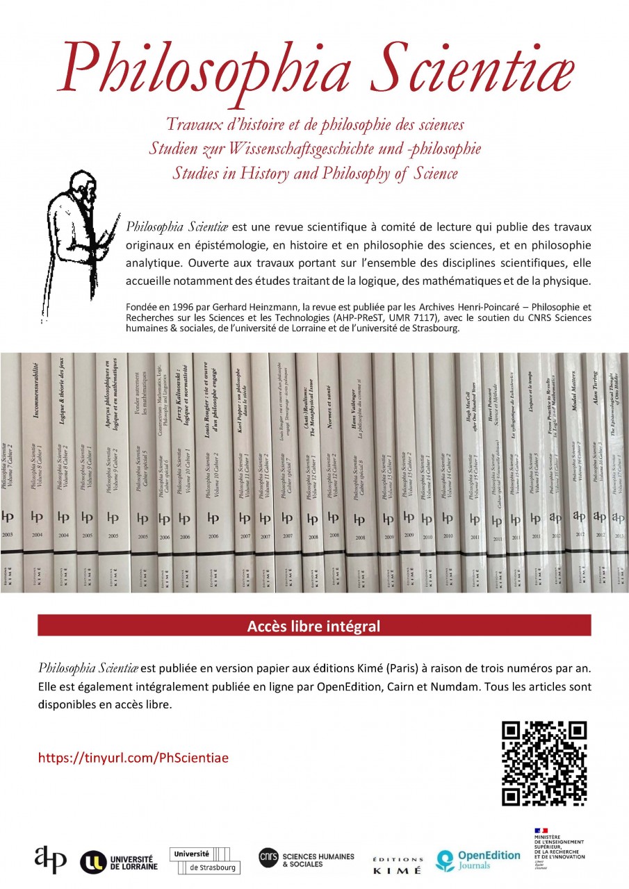 Pour toute information supplémentaire (anciens numéros, consignes aux auteurs, résumés), merci de consulter le site de la revue : http://philosophiascientiae.revues.org/.