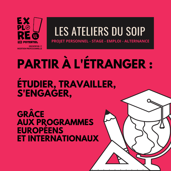 Alors, ce nouvel atelier accessible directement à distance (via Teams) n'attend que vous ! Il vous permettra d'en savoir plus sur toutes les opportunités à l’international et de poser toutes les questions utiles à la réalisation de votre projet de départ.
