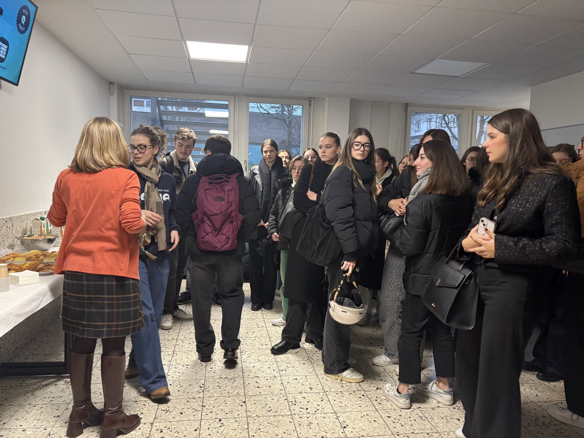Laurence Corroy, professeure encadrante de l’exposition était également présente, accompagnée de l’ensemble des enseignant·es en information-communication et de l’équipe de direction.