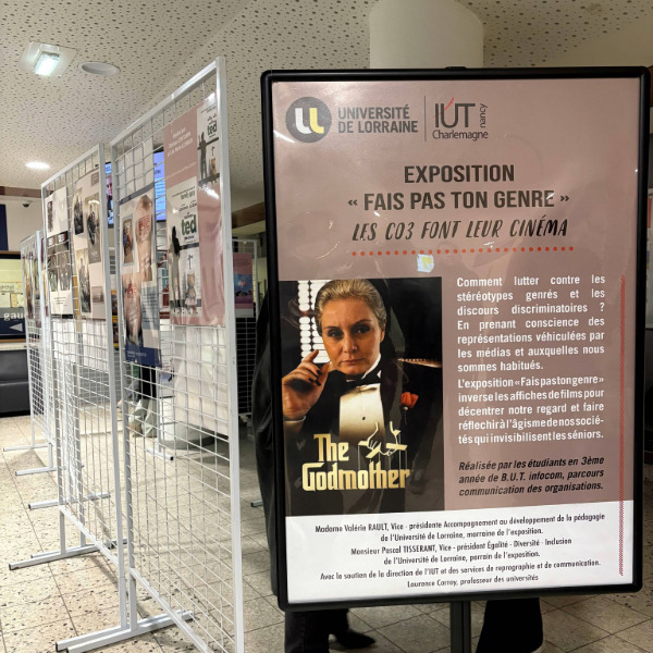 Le mercredi 8 janvier 2025, l’IUT Nancy-Charlemagne a donné le coup d’envoi de la nouvelle édition de l’exposition « Fais pas ton genre », intitulée cette année Les CO3 font leur cinéma. Un événement qui s’inscrit dans une démarche de sensibilisation et de réflexion sur les stéréotypes véhiculés par le cinéma.