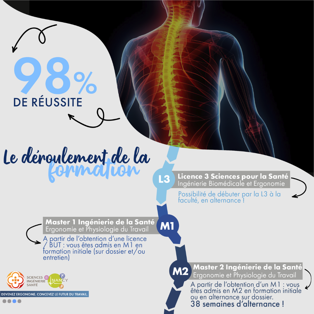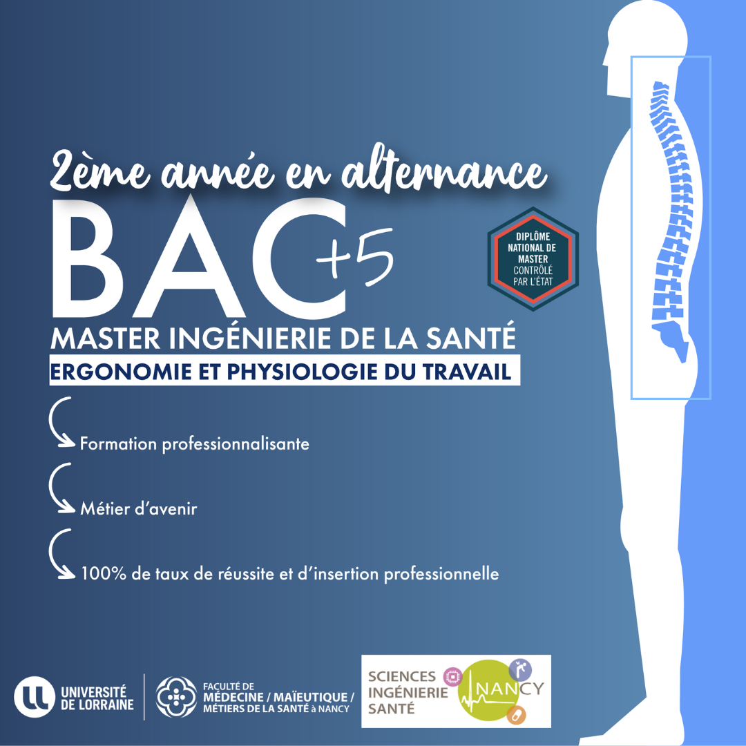 La santé au travail est devenue un enjeu majeur pour les entreprises et la société. Parmi les métiers clés du domaine, l'ergonome se distingue par son rôle essentiel dans l'amélioration des conditions de travail et la prévention des risques professionnels. Si vous êtes passionné par la santé, le bien-être des salariés, et souhaitez agir directement sur leur organisation et leur environnement de travail, le Master Ingénierie de la Santé, parcours Ergonomie et Physiologie du Travail (en alternance), proposé par la faculté de Médecine, Maïeutique et métiers de la Santé de Nancy (Université de Lorraine) est une formation qui pourrait vous convenir.