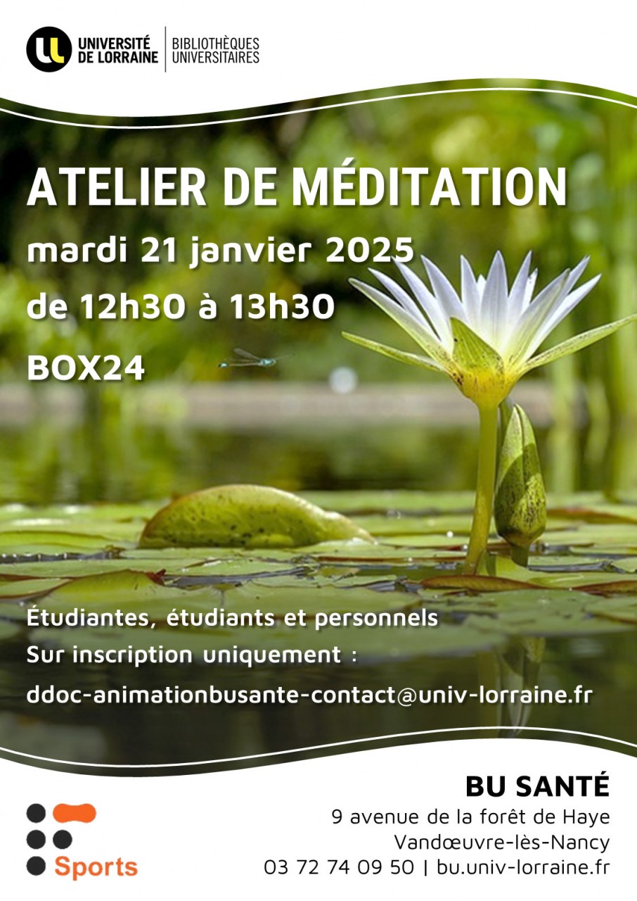 ![[Atelier] "Méditation" à la BU Santé le 21 janvier](https://old-factuel.univ-lorraine.fr/sites/factuel.univ-lorraine.fr/files/styles/medium/public/field/image/2025/01/affiche_meditation_a3.jpg?itok=AsGY0tiC)