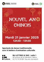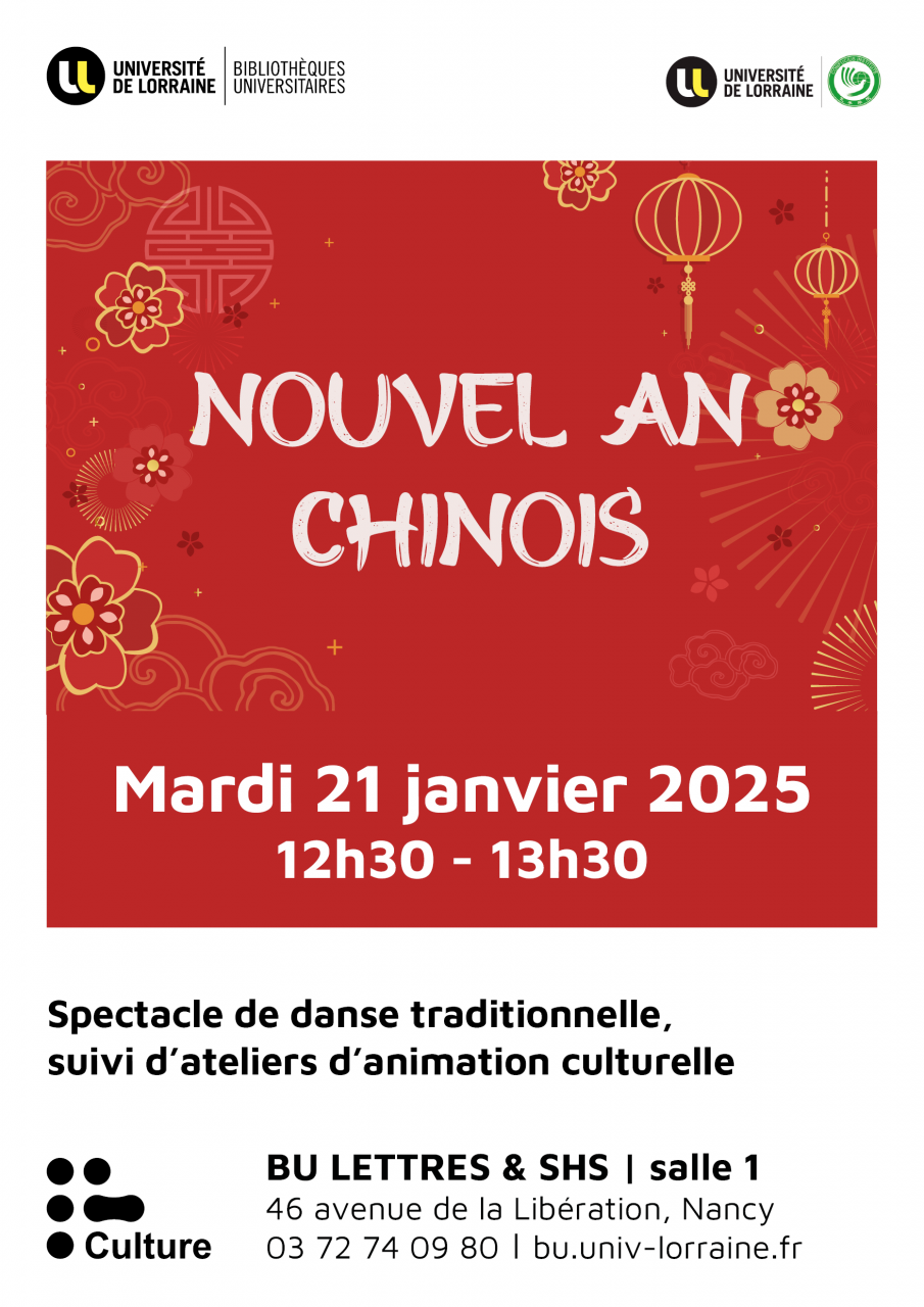 Venez passer un moment sous le signe du serpent en fêtant le Nouvel An chinois à la bibliothèque universitaire de Lettres & SHS le mardi 21 janvier 2025 de 12h30 à 13h30.