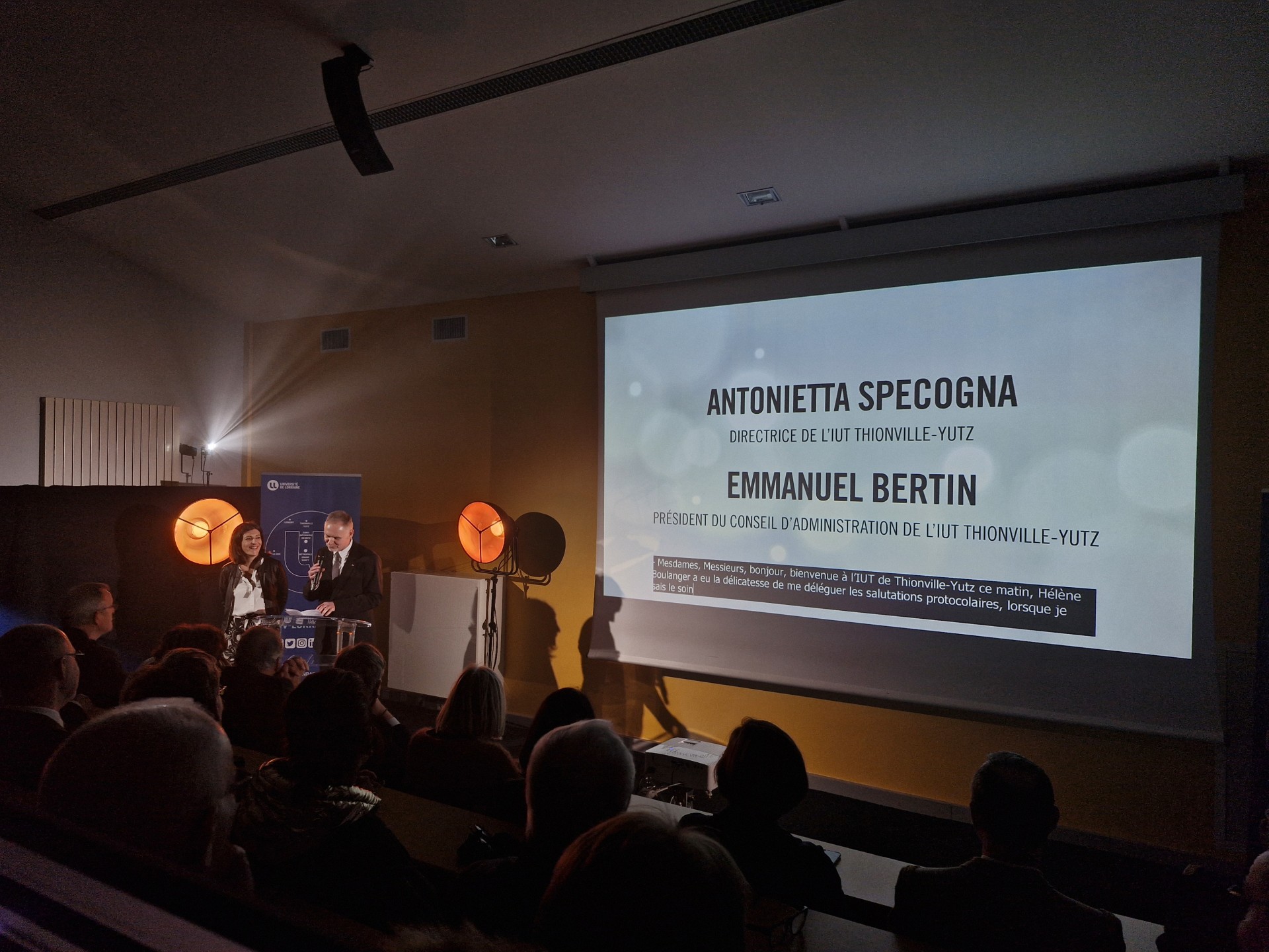 L’ouverture de la cérémonie a débuté par un accueil chaleureux de Antonietta Specogna, directrice de l’IUT Thionville-Yutz et Emmanuel Bertin, président du Conseil de l’administration de l’IUT.