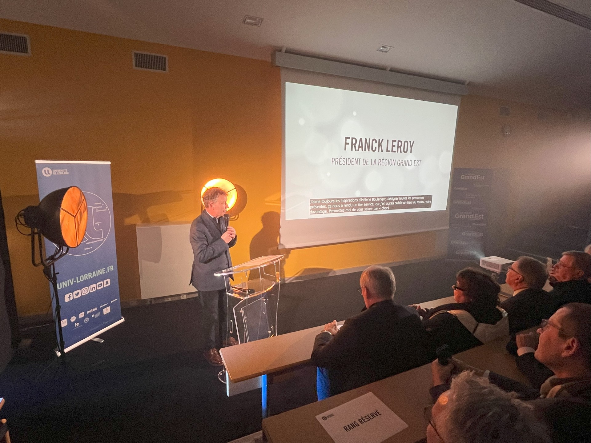 Au cours de cette cérémonie, Franck Leroy, président de la Région Grand Est, a pris la parole pour rappeler les engagements de la Région Grand Est envers le monde universitaire. Une année 2024 qui a été marquée par de nombreux défis et réussites avec l’Université de Lorraine comme la labellisation du projet ENACT (IA). Un projet soutenu par plusieurs partenaires, dont deux universités majeures de la Région Grand Est, l’Université de Strasbourg et l’Université de Lorraine, qui incarne une collaboration solide qui a permis de renforcer les moyens et l’influence du territoire. Le projet ENACT est symbolique, il illustre comment ces universités implantées sur le territoire permettent à la Région Grand Est de se positionner à la pointe des progrès en intelligence artificielle, un domaine en pleine expansion sur plusieurs secteurs comme la santé, l’industrie ou encore la défense.