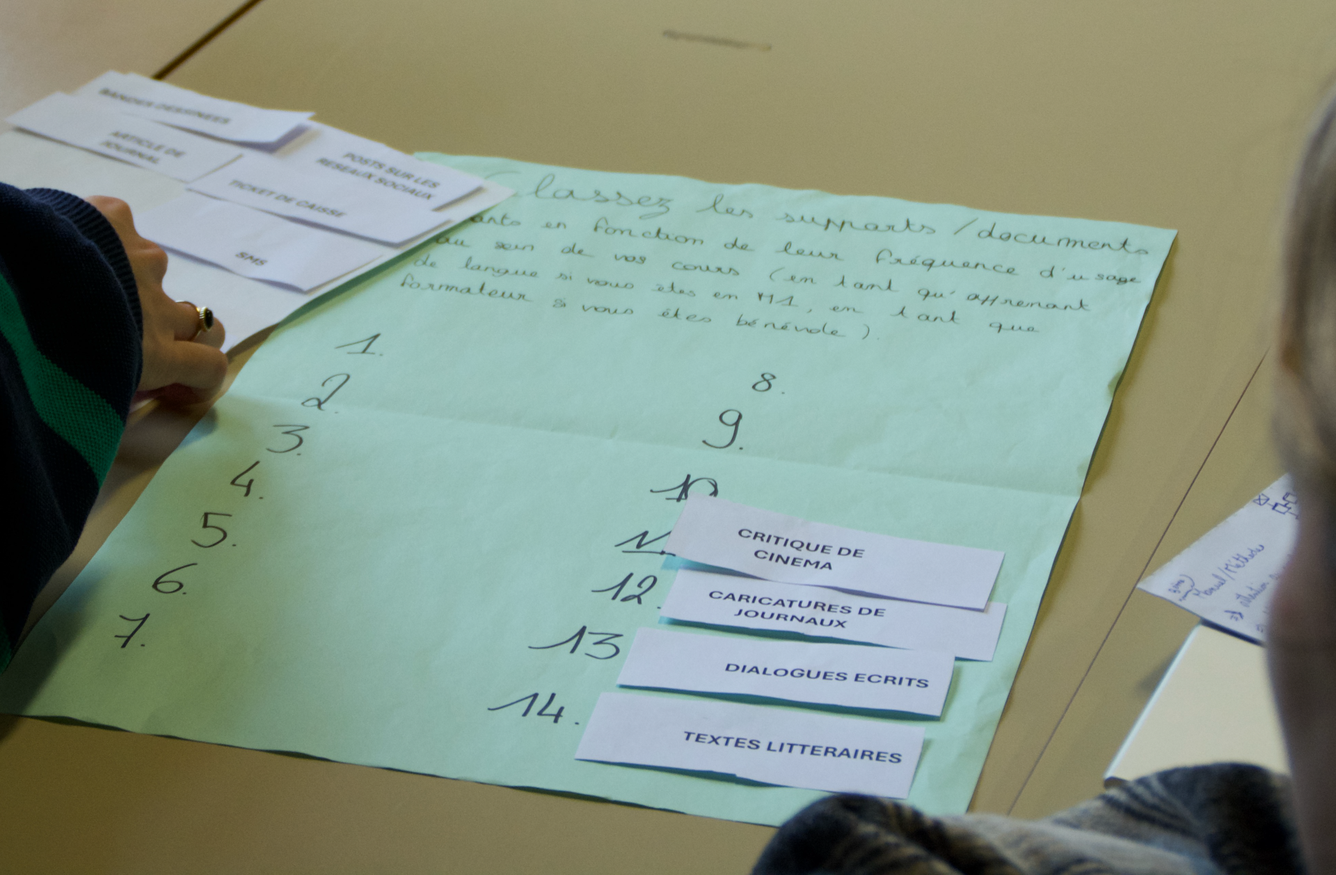 - Le corpus : cet atelier a permis de mettre en commun les idées des participants pour créer des ateliers pédagogiques basés sur des vidéos de situations de la vie quotidienne.