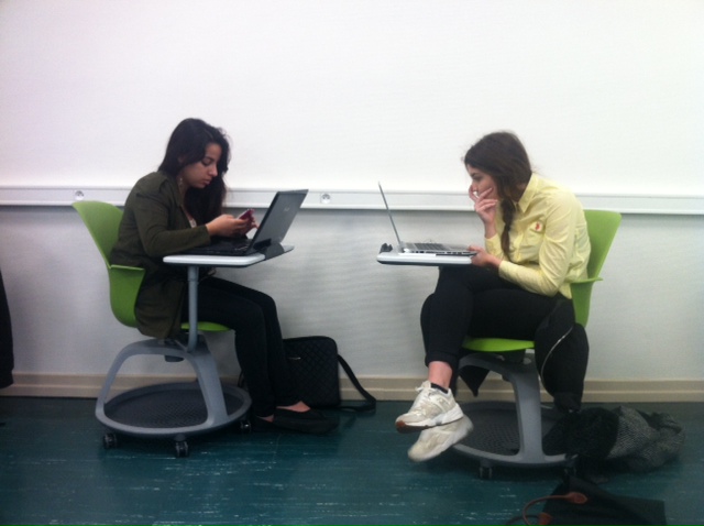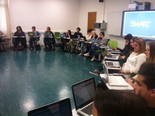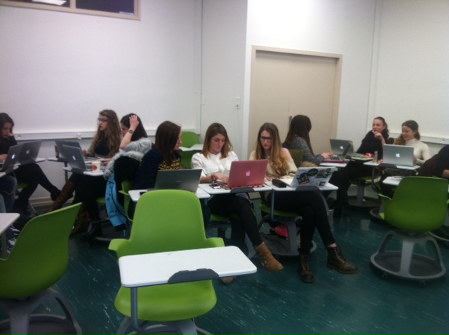 Au départ, les étudiants ont décidé de travailler tous ensemble ce qui n'a pas tout à fait marché, ils ont donc changé le fonctionnement du cours et ils ont défini chacune des taches à effectuer. Ils ont séparé la classe en neufs petits groupes pour que chacun travaille sur un sujet particulier. A la fin de chaque cours un compte rendu mené par un étudiant est fait. Ce système marche plutôt bien, même très bien. Un réel dynamisme et enjouement se dégage.